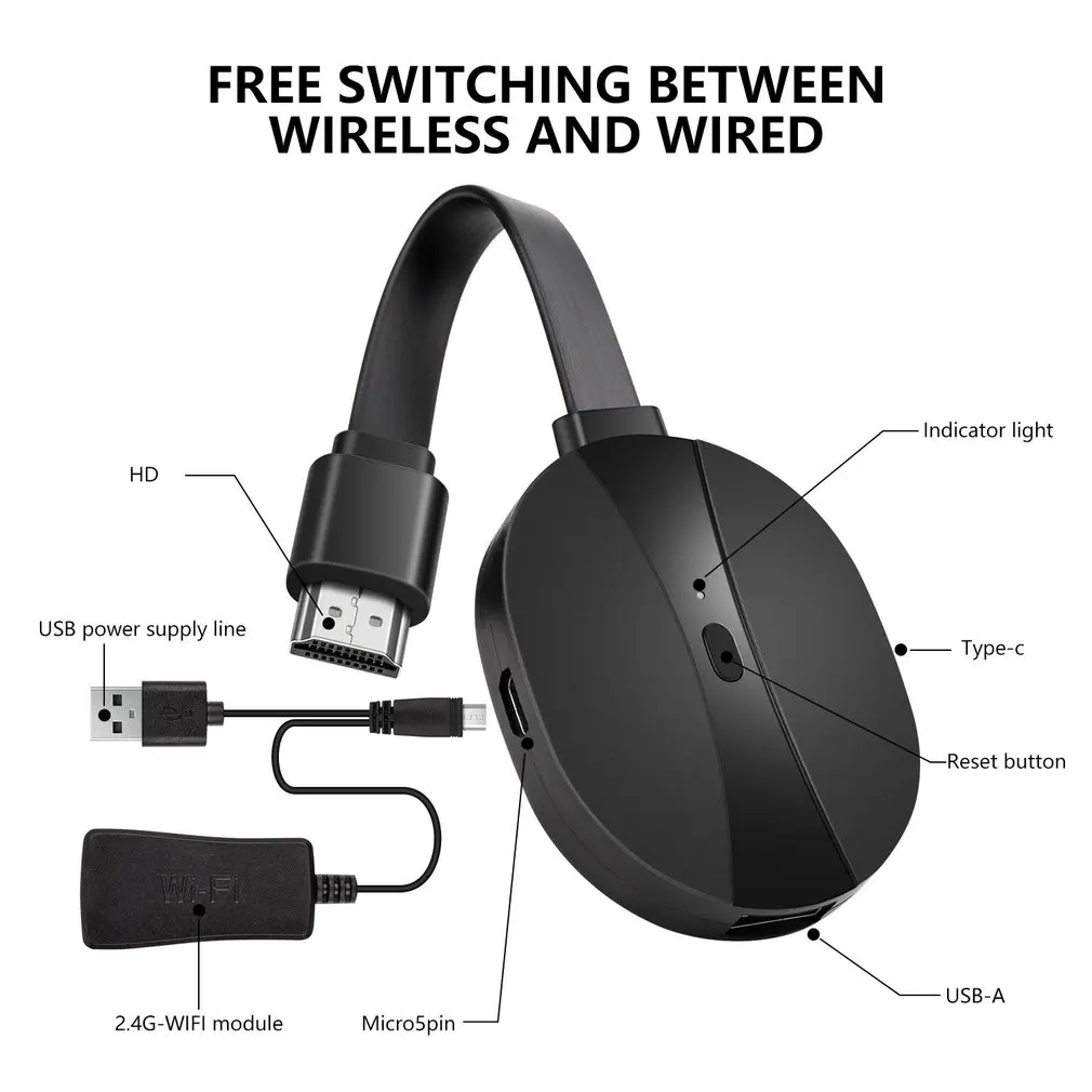 Features: 1. Material: this same screen device is made of good material, which is durable. 2. Wireless screen projection: wireless screen projection is more free and convenient. 3. Support 1080p resolution: the picture is clear and delicate, support 1080P resolution, high-definition feast, give you cinema-level visual experience. 4. Compatibility: for Android system support most apps. IOS system can not support paid APPS. 5. Applicable for: it is applicable for business office, home theaters, game entertainment, education and learning. Description: With lightweight and portable size, this same screen device is easy and convenient to carry and use. Specifications: Output resolution: 1080p Service environment: Indoor Interface : HDMI-compatible Memory: 128MB Package Included: 1* Same screen device