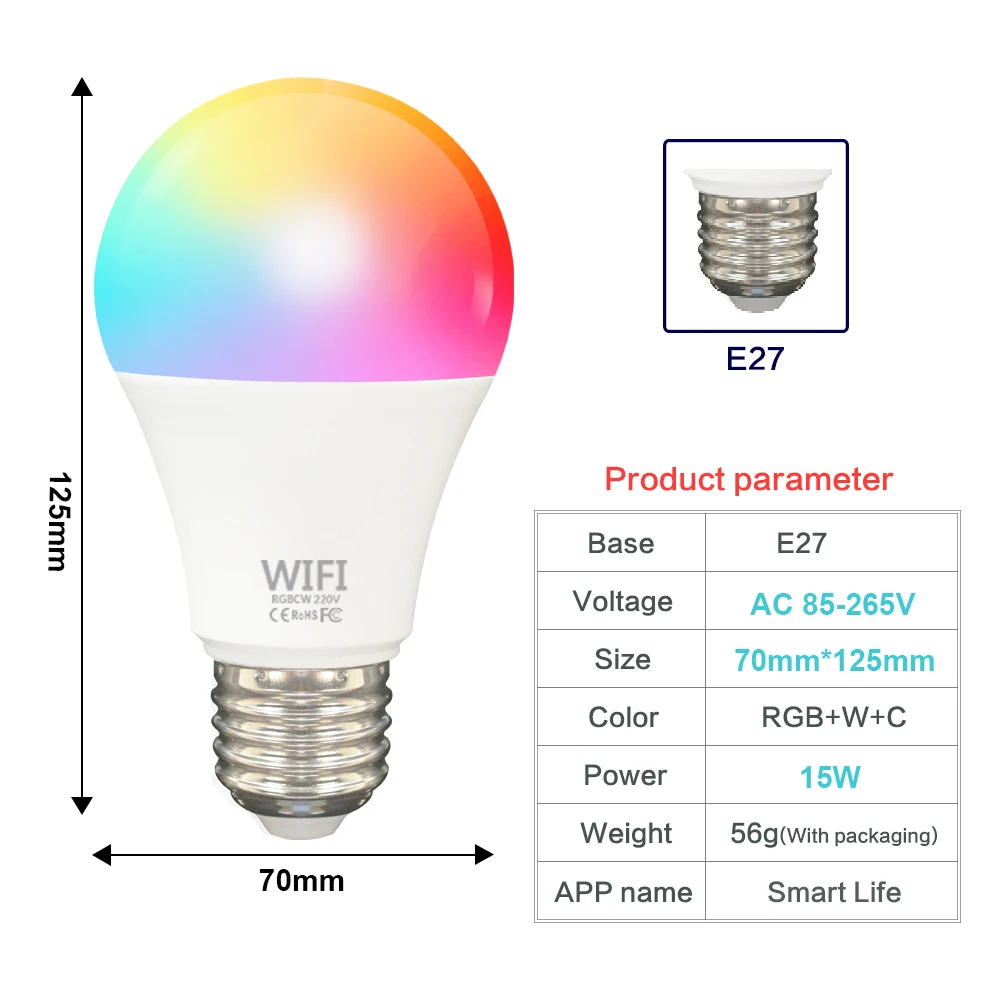 Умная лампочка Tuya 12 Вт 15 Вт WiFi RGB лампа 220 В 110 В с регулируемой яркостью E27 WiFi лампа накаливания совместимая с Amazon Alexa Google Home Smart Life