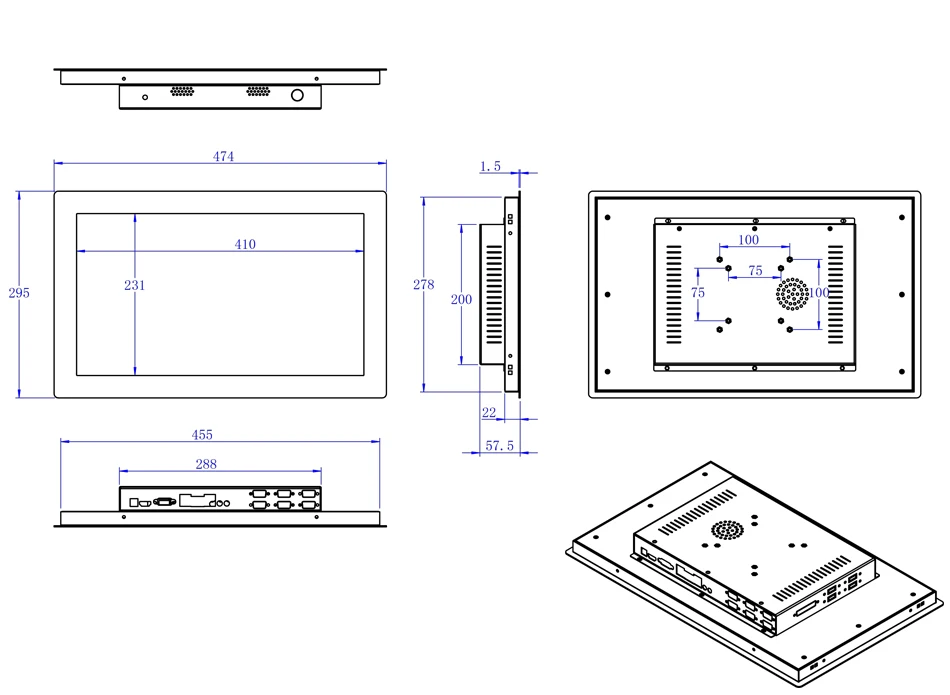 There are eight small holes behind the product, the distance between the four installation holes inside is 75mm x 75mm, and the outside four mounting holes are 100mm x 100mm, equipped with wall hanging installation accessories and embedded installation accessories, the installation mode is flexible, and the following installation methods are for reference only.