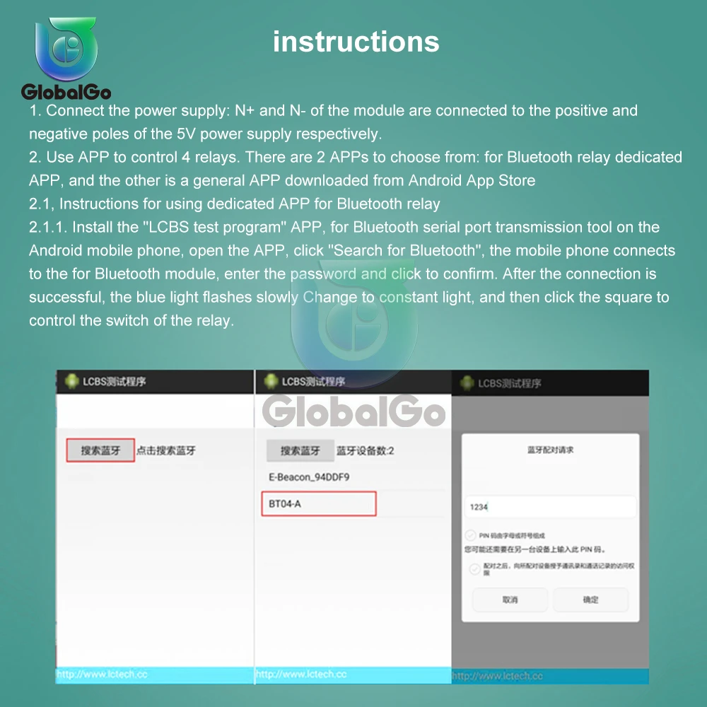 2. Используйте приложение для управления 2 реле. Есть 2 приложения на выбор: одно-это специальное приложение Bluetooth, разработанное LC Electronics, а другое-общее приложение, загруженное из магазина приложений Android.