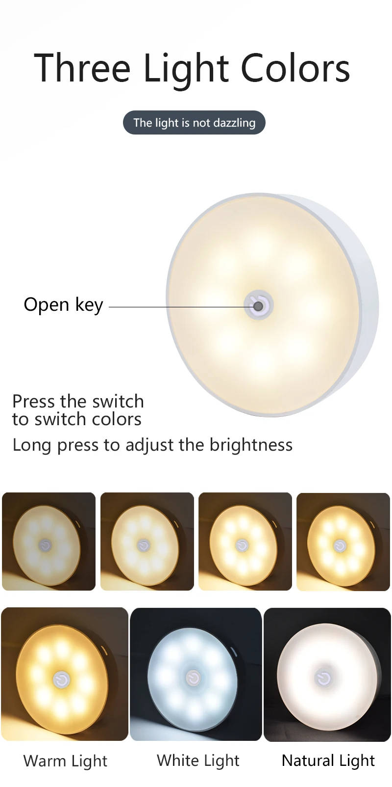 Подвал, гараж, лестничная площадка, нефтяные склады, крыша, дверь, гаражные входы и другие места. 8 шт. светильник с бусинами Ночной светильник:3 цветаВстроенный аккумулятор 400 мАчРазмеры: 85*20 мм (3,35 * 0.79in)Упаковка: Ночной светильник + usb-кабель + Двусторонняя лента + магнит