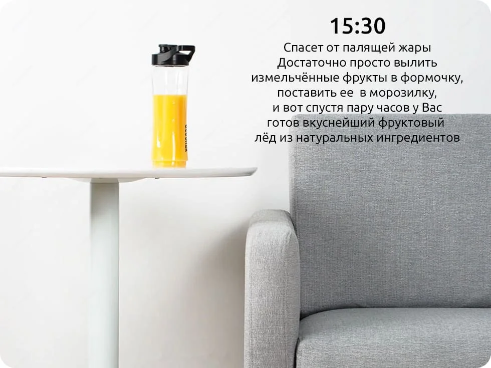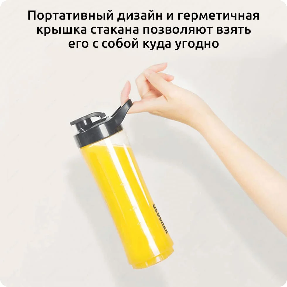 Стакан блендера можно безопасно носить с собой, как и любая другая кружка или термос. Его крышка защищена от протечек и имеет удобное ухо для переноски.