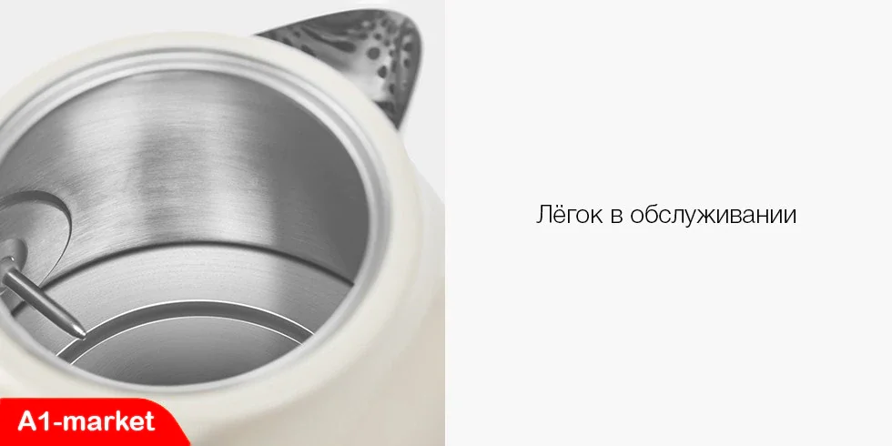 Корпус чайника полностью изготовлен из безопасной нержавеющей стали марки AISI 304, не боится высоких температур и легко моется. Кроме того, нержавеющая сталь не вызывает неприятного запаха и сохраняет свои свойства в течение длительного времени.