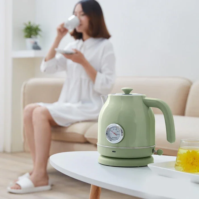 Расположенный на корпусе чайника, Круглый Термометр напоминает измерительные приборы в старых автомобилях, и нравится им, это также создает впечатление высокой прочности и надежности. Термометр в реальном времени показывает температуру воды: 70 ° c подходит для изготовления сухого молока, 85 ° c-отличная температура для чая, 100 ° c-безопасная температура для очистки питьевой воды.