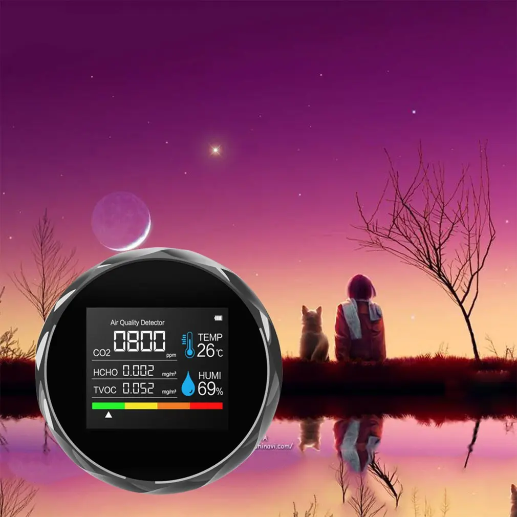 Особенности: 1. Мониторинг в реальном времени и отображение концентрации углекислого газа в реальном времени на кубический метр. 2. Он может обнаруживать и отображать температуру и влажность окружающей среды, чтобы помочь пользователям понять окружающую среду. 3. Он подходит для офисов, домов, гимназий и других случаев, с широким спектром применений. 4. Интеллектуальный цветной экран, четкие цифры, легко идентифицировать и читать. 5. В режиме будильника, пользователю напоминается обратить внимание на окружающую среду, изменяя цвет. Он имеет длительный срок службы и может заряжаться с помощью usb-кабеля. Описание: Он маленький и портативный, легко носить с собой, не занимает слишком много места и может быть установлен дома. Характеристики: Материал: АБС-пластик Точность измерения: 1ppm Диапазон измерения: 400-6000 Рабочее напряжение: 3,7 V Ток: 120мА (2CO6, NDIR), 190ма (2CO5, TVOC) Мощность: 0,4 Вт (2CO6, NDIR), 0,7 Вт (2CO5, TVOC) Батарея: 3,7 V, 1500mAh Размер: 94*94*30 мм Посылка включает в себя: 1 * детектор газа (батарея входит в комплект) 1 * Usb кабель 1 * Руководство пользователя