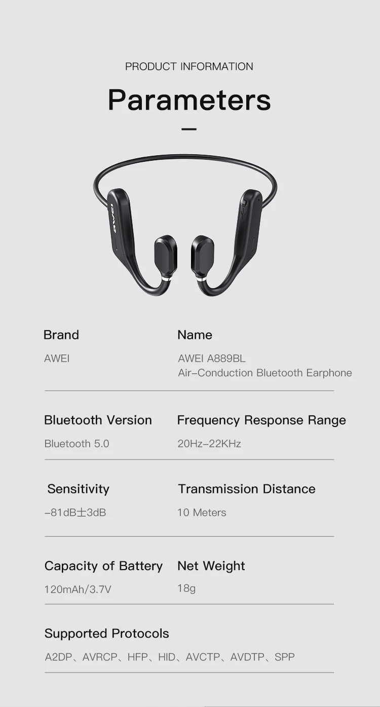 Примечания:В тех случаях, когда заряд батареи ниже, чем 10%, наушники подсказки: низкий заряд батареи.Для включения нажмите и удерживайте кнопку питания в течение 10 секунд, бело-зеленые огни не будут поочередно мигать.Нажмите кнопку переключателя, чтобы воспроизвести/оставновить воспроизведение музыкиНе поддерживает Многоточечное соединениеНовое поколение воздушных проводимости для наушников: акцент на excelsior выделка и захватывающий опыт, воздушная проводимость без контакта с внешними, слухового канала, Bluetooth 5,0, стабильная работа при скачках анти-помех водонепроницаемый справиться с различных средах, встроенный аккумулятор 5 часов время воспроизведения, анти-изгиб эластичный рамка из титанового сплава, Hi-Fi чистый объемное звучание, пара при загрузке быстрое соединение, дальнее расстояние надежнее