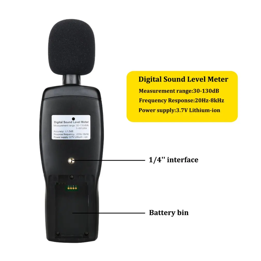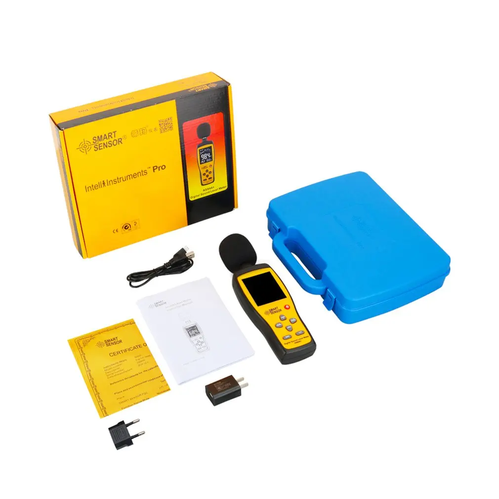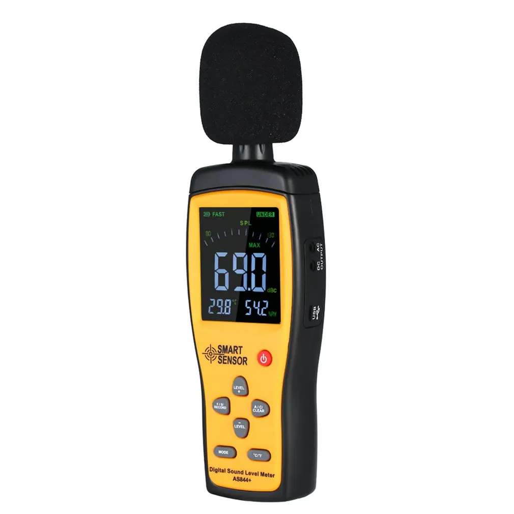 Особенности: 1. Функция хранения данных может хранить до 15000 групп данных. Подключение к компьютеру через usb-кабель, который поддерживает загрузку журнала данных, Анализ образцов в реальном времени, графику и печать данных. 2. Отображение текущей температуры в режиме реального времени (переключение ℃/℃) и влажности. 3. Большой 2,7 "ЖК-дисплей экран для удобного чтения, удобно в использовании. 4. Широкий диапазон измерений от 30 дБ до 130 дБ, частота: 31,5 Гц-8 кГц, 5. Разрешение: 0,1 дБ, Точность: ± 1,5 дБ. 5. С эквивалентными уровнями звукового давления A и C. Быстрый и медленный динамический режим характеристики. Описание: Портативный и простой в использовании, подходит для проверки, мониторинга или контроля уровня звука для личного, семейного, бизнеса, студий, промышленности и т. Д. Характеристики: Номер модели: AS844 + Калибровочный источник звука: 94 дБ @ 1 кГц Диапазон измерения: 30-130dBA / 35-130dBC Точность: ± 1,5 дБ Разрешение: 0,1 дБ Динамический диапазон: 50 дБ/100 дБ Индикация перегрузки: более/менее Характеристики взвешивания частоты: A и C Цифровой экран: 31/2 цифр Аналоговый бар: 1 дБ/1 бар граф Частота дискретизации: 20 раз/секунду Выход сигнала переменного тока: 1 Vrms/полный бар grph Динамическая характеристика: регулятор скорости "быстро-медленно" Объем хранения данных: 15000 Автоматическое выключение: (после операции или в течение 10 минут) Микрофон: 1/2 дюйма Емкость смещения Управление volyage: 3,7 V / USDB 5V литиевая батарея Продолжительность работы батареи: 12 часов (непрерывное использование) Диапазон измерения температуры: 0-45 °C Точность температуры: ± 2 °C Диапазон измерения влажности: 10-99% RH Точность влажности: 5% относительной влажности Размер: 225x66x31cm Посылка включает в себя: 1 комплект * цифровой измеритель уровня шума (батарея не входит в комплект)