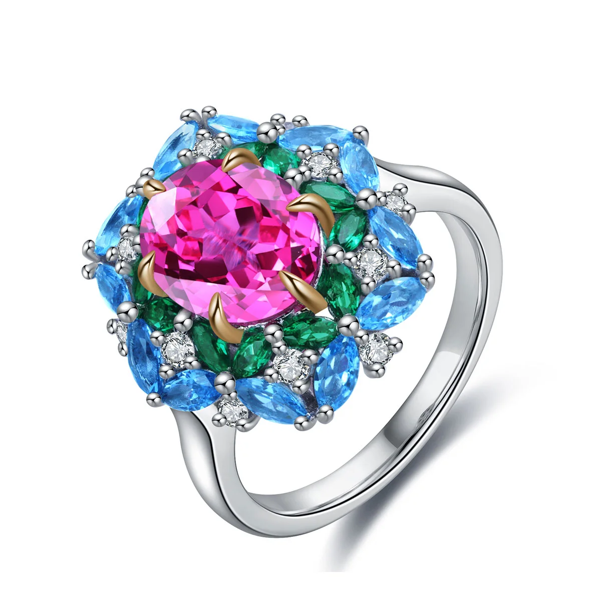 Высококачественные ювелирные изделия S925 3.1ct, 7,6*10 мм лаборатория создан розовый Сапфир стерлингового серебра модный стиль кольца оптовая цена