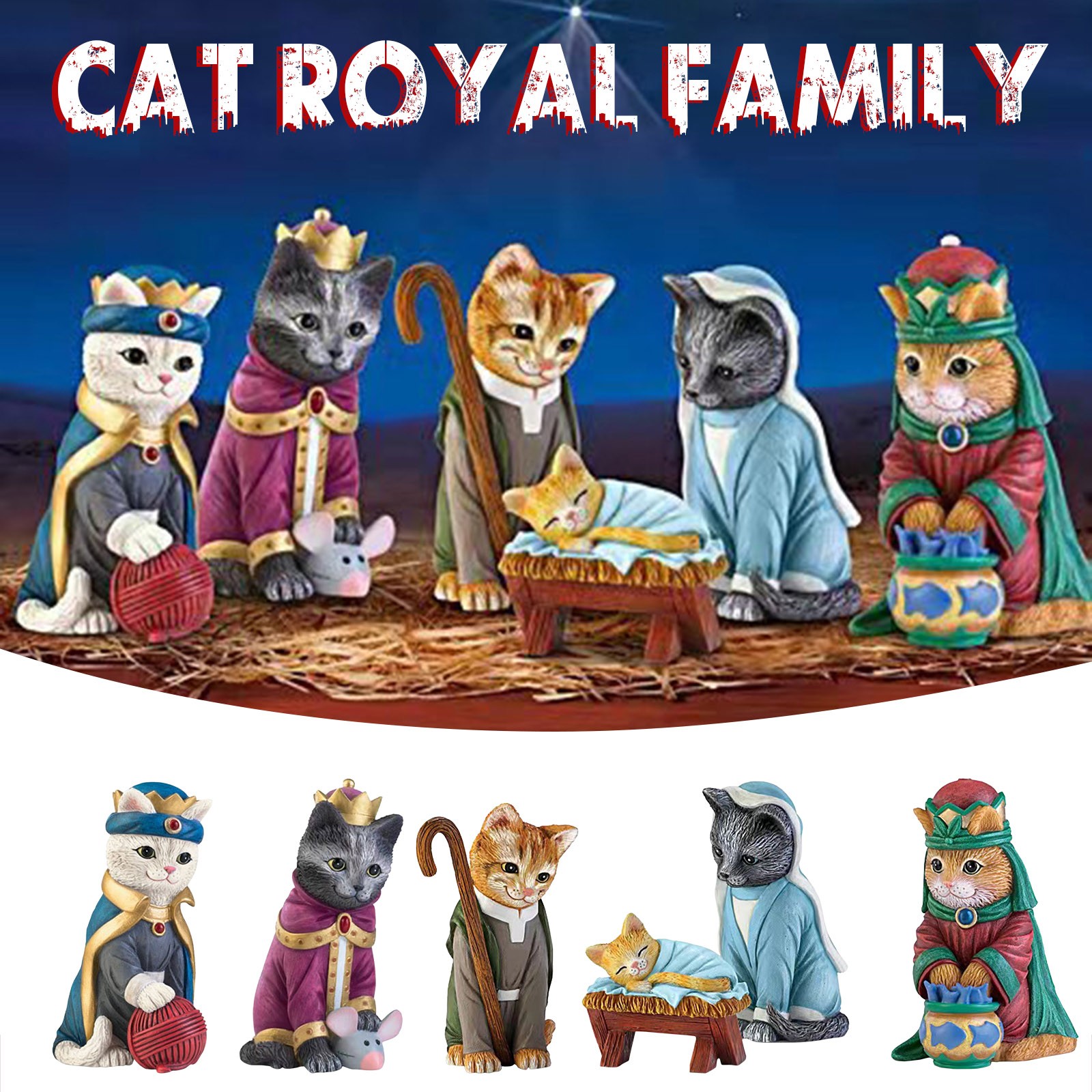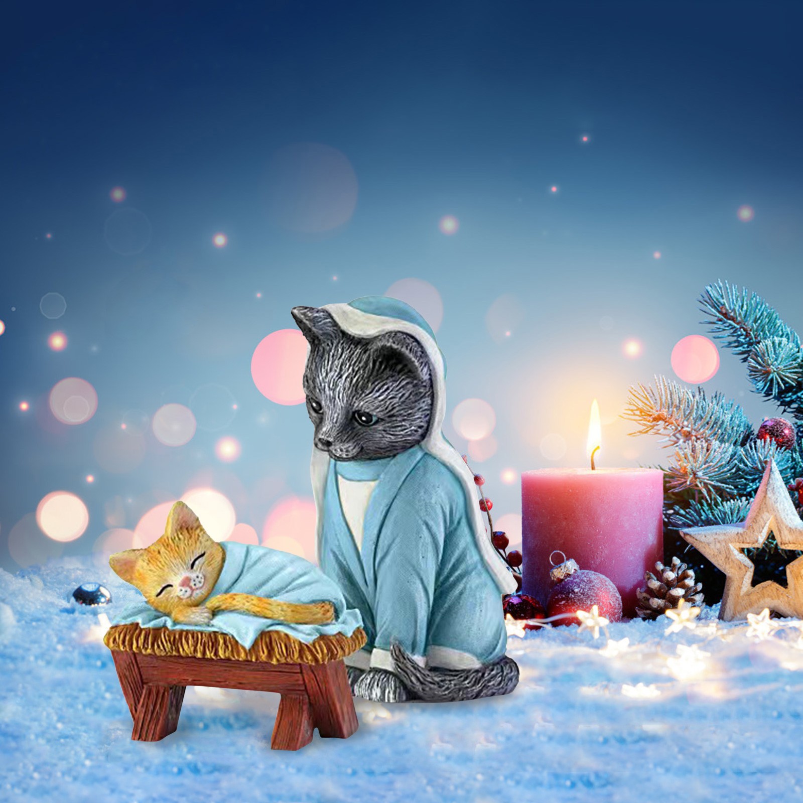 Кот изделия из смолы украшения дома серии рождения Иисуса