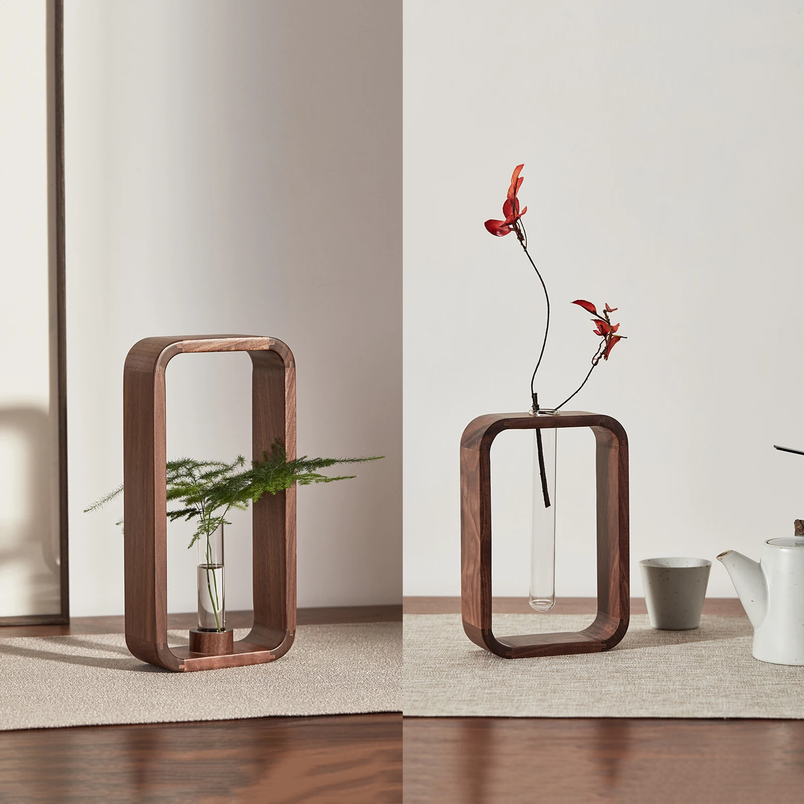 Ваза для пробирки с деревянной рамой из грецкого ореха для выращивания водных растений или размещения сухоцветов. Простое, стильное и романтичное украшение. Положите его на стол или полку и Продемонстрируйте свой хороший вкус.