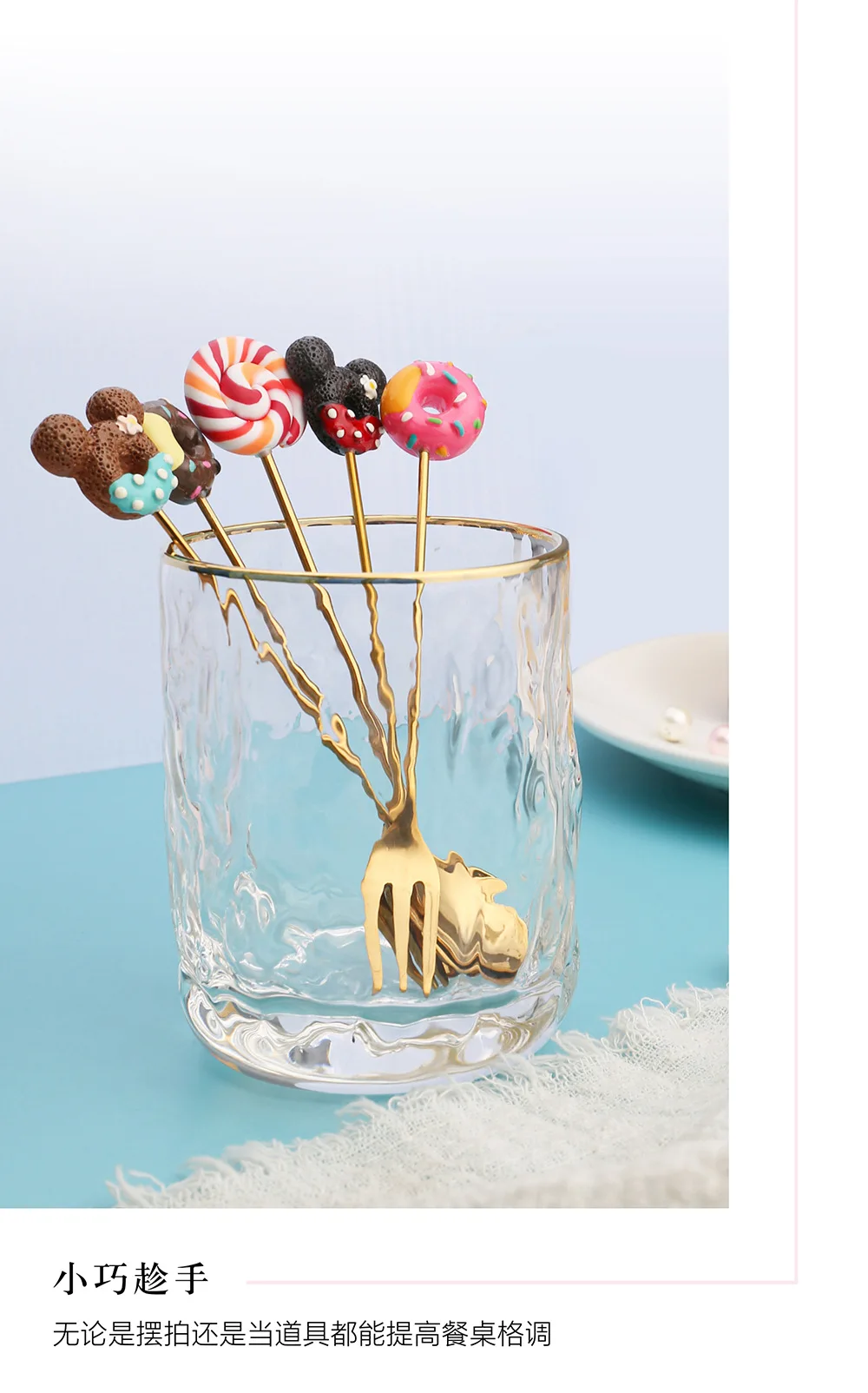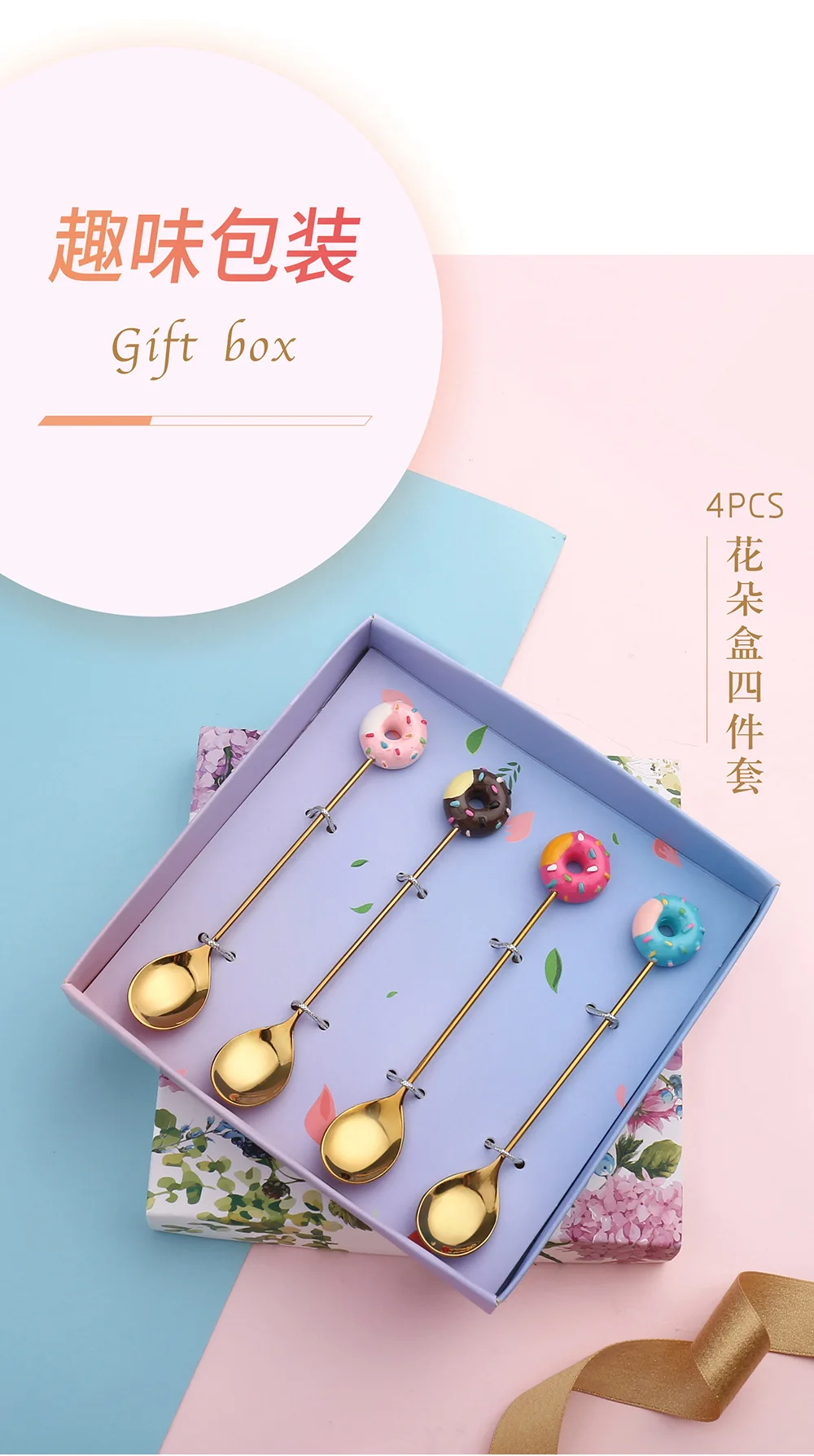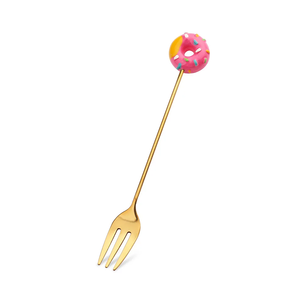Милая ложка из нержавеющей стали, Детская мультяшная фруктовая вилка, пончики, чайная ложка, вилка, посуда, кофейный десерт, кухонный инструмент