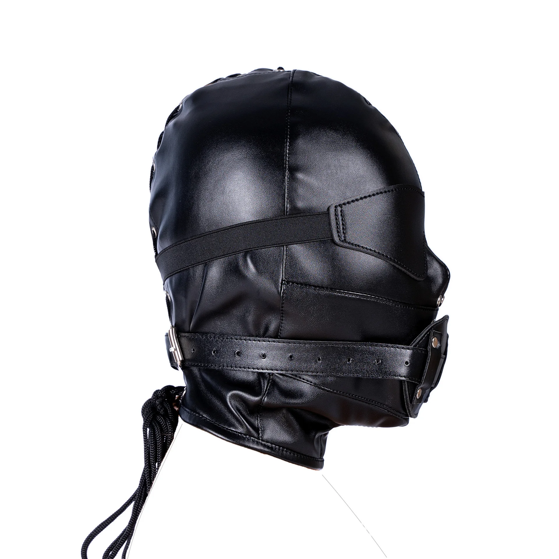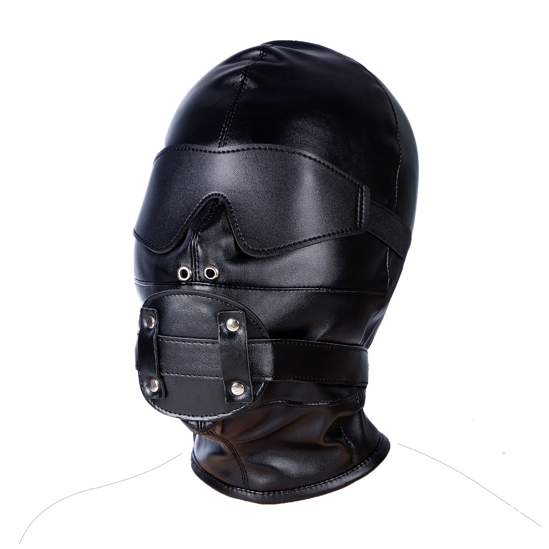 ●Профессиональный 3-в-1 Фетиш маска комплект, с головой маска, повязка и в рот кляп. Гладкая и мягкая ткань из искусственной кожи обеспечивает отличную светонепроницаемость.