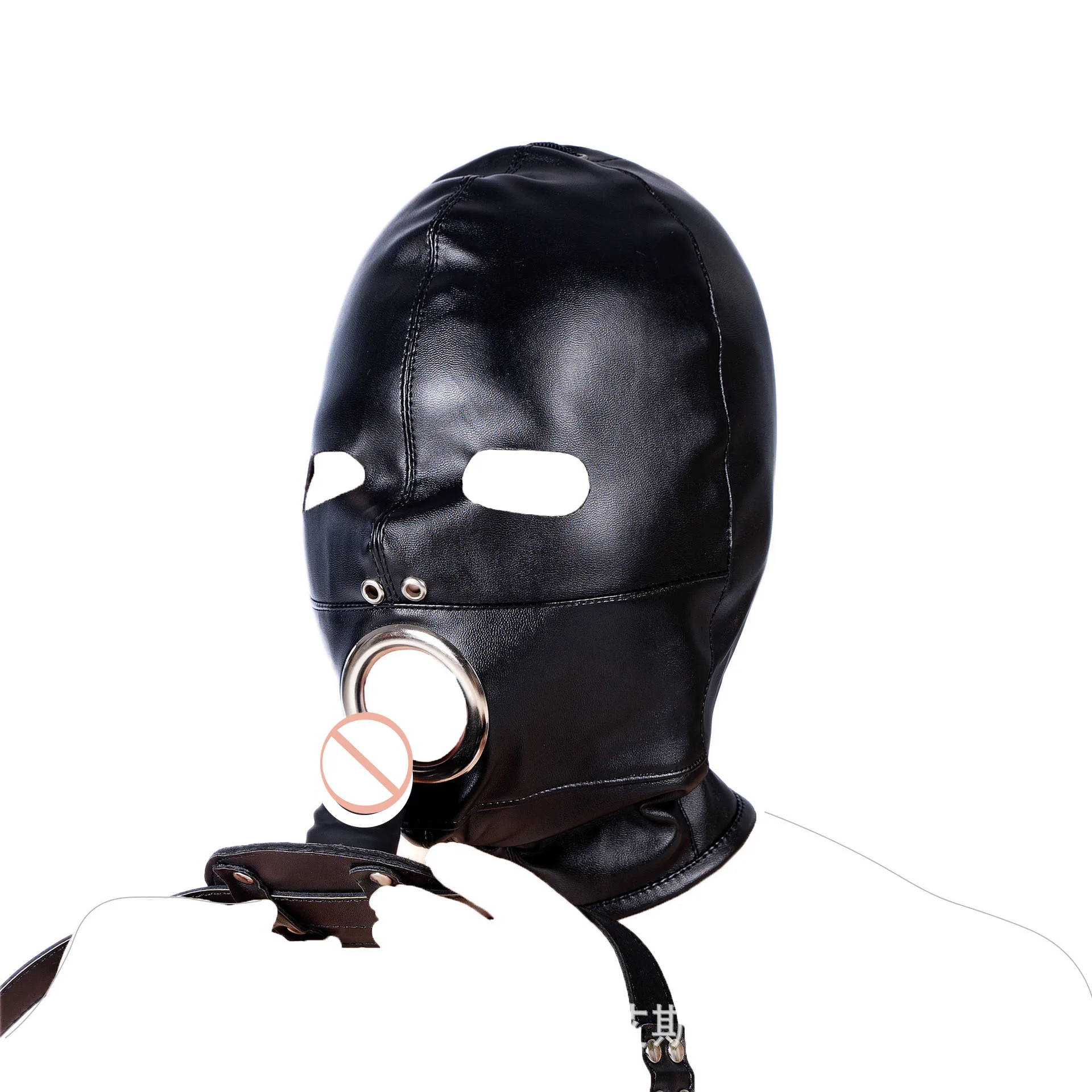 SM кожаный капот силиконовый фаллоимитатор рот кляп Openable маска для глаз Фетиш рабство секс Вечерние Маски для пары БДСМ бондаж Gimp эротические инструменты