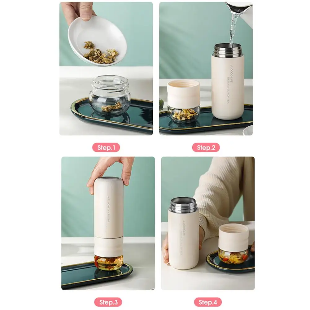 300 мл Изолированная чашка с фильтром чайник из нержавеющей стали Термос бутылка для воды со стеклянным наполнением отделяет фильтр чая и воды