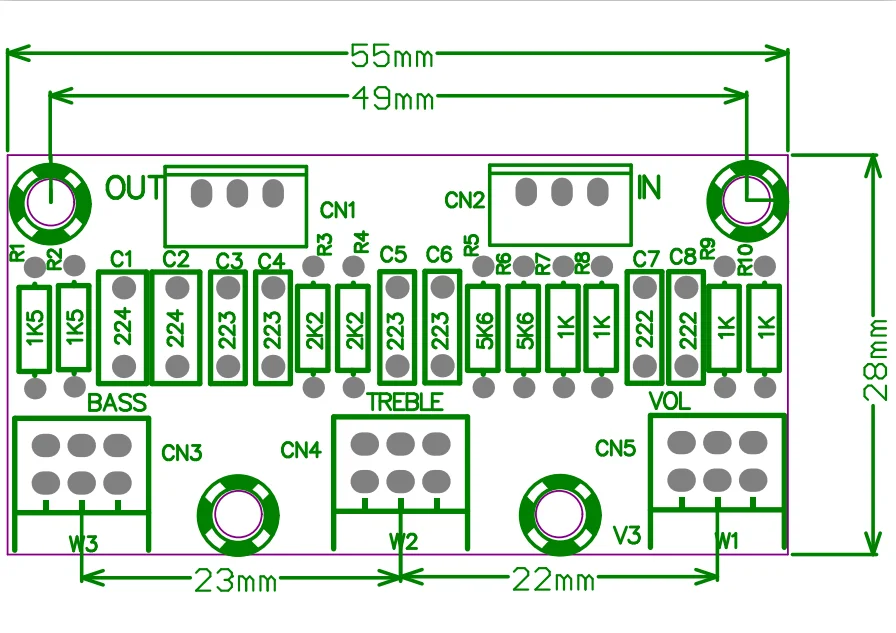 The principle of the product is to filter the audio signal directly through the resistance and capacitance elements to get the desired high and low pitch. The tone board does not need power supply, but the volume will be much smaller after processing.