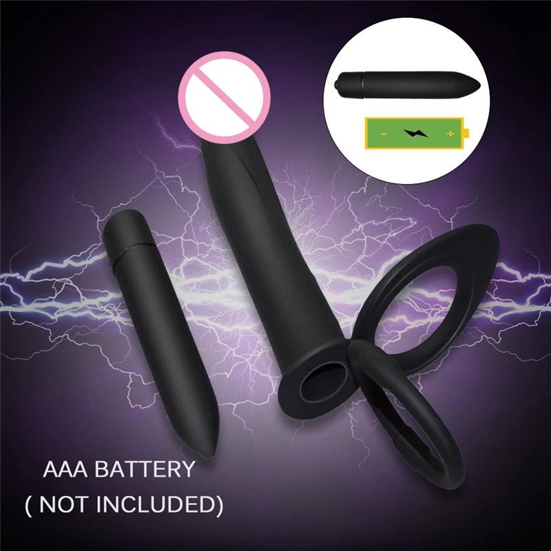 Двойное кольцо на член с реалистичным пробером для двойного проникновения удовольствия