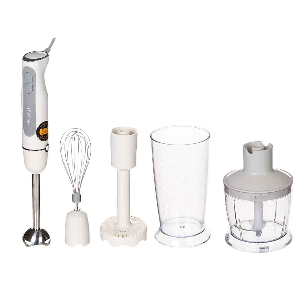 Номинальная мощность: 800 Вт. Макс. мощность: 1300 Вт. Скорость работы в основном режиме/в турборежиме: 9000/15000 об/мин. 2 скорости. Чаша измельчителя: 500 мл. Мерный стакан: 600 мл. Материал погружной части: нерж. сталь. Длина шнура питания: 1 м
