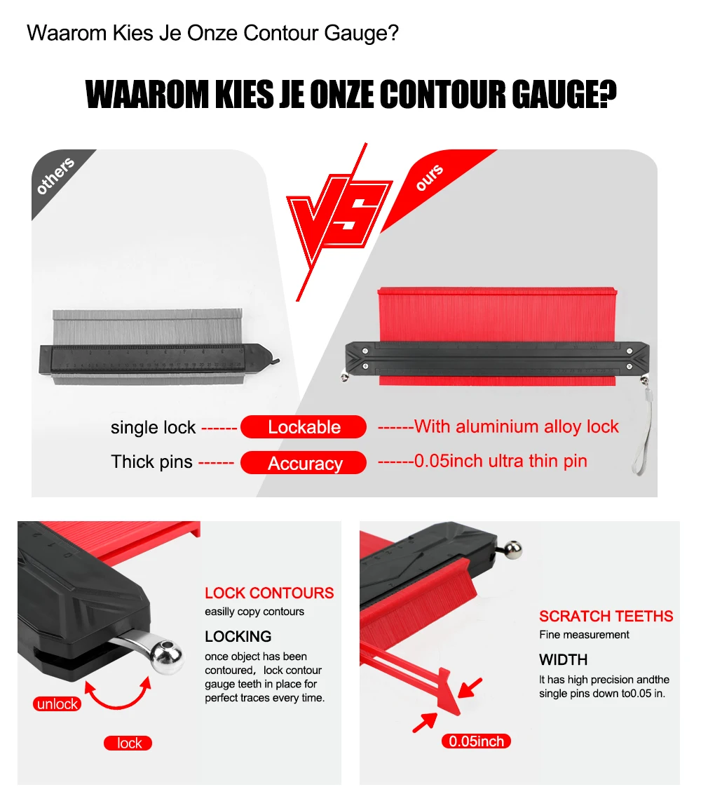 Датчик профиля предназначен для обмоточных труб, круглых рам, труб и многих объектов. Просто нажмите на зуб на предмет, чтобы соответствовать и отслеживать форму, которая вам нужна.