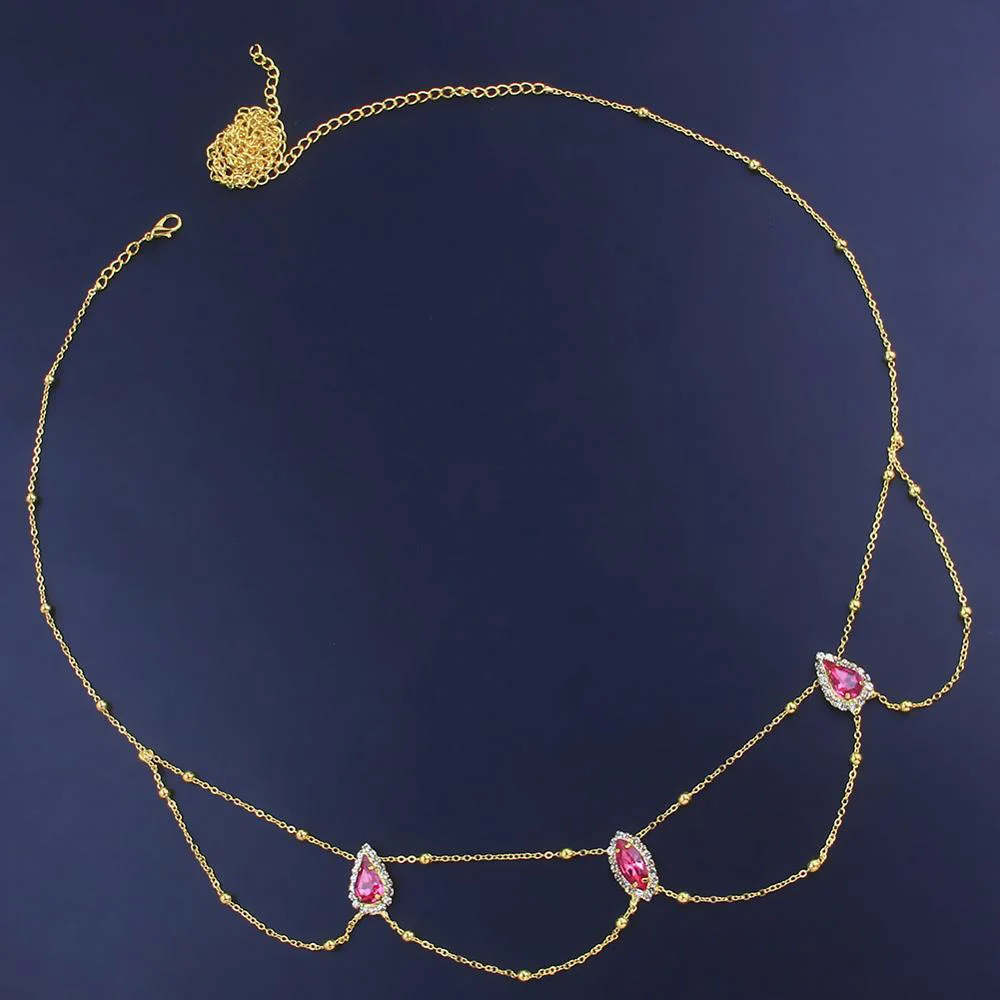 Название: женский пояс-цепочка с зелеными кристаллами в форме капли Stonefans