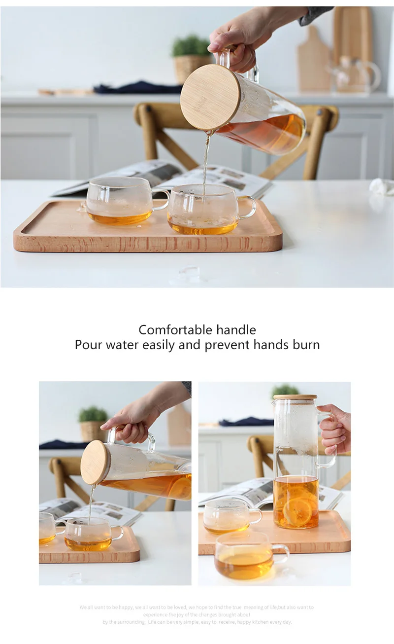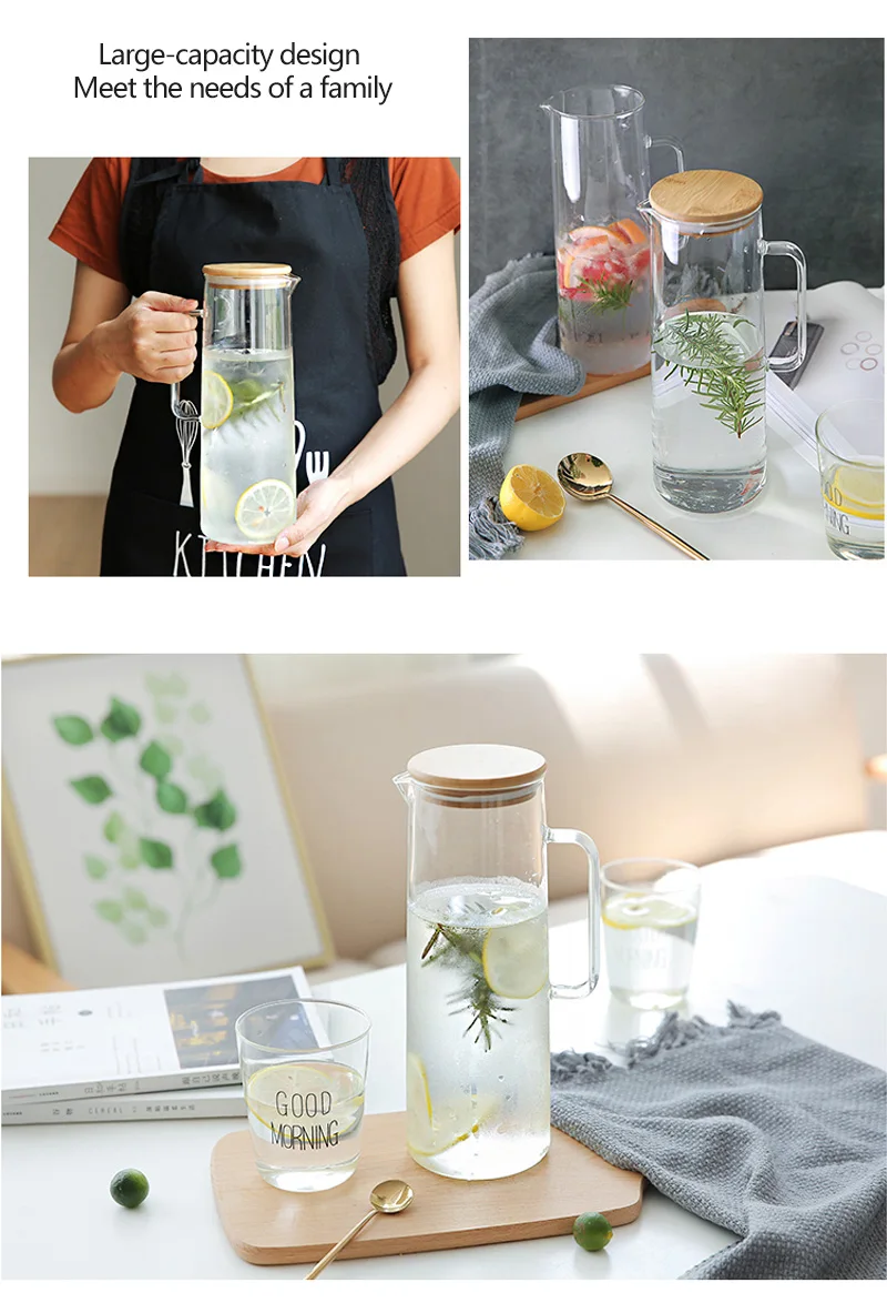 Стеклянная бутылка для холодной воды кувшин чайник прозрачный Большая прозрачность термостойкий чайник с ручкой чайник кувшин 1.2L 1.4L