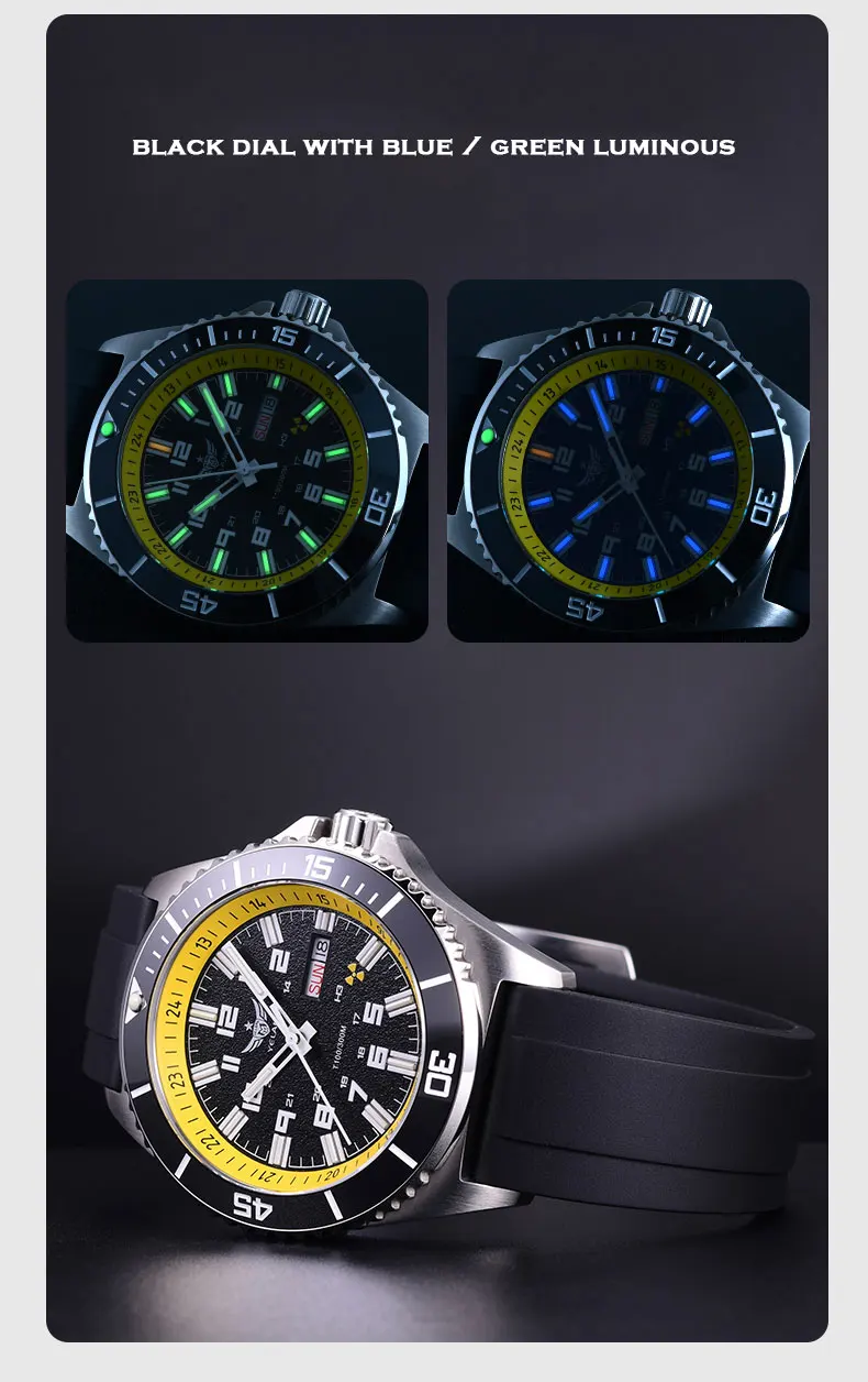 2, Модель: V10313, 14 шт T100 тритиевые трубы4, Япония 25 драгоценностей автоматическое движение (точность: +-8s/d)5. Зеркало: сапфировое стекло + AR покрытие6, чехол из нержавеющей стали 316L7, ремешок из нержавеющей стали 316L/резиновый ремешок8, Корона: винт-вниз9, задняя часть: сплошная винтовая задняя часть10, вес: 116 г (резина)/203 г (сталь)11, водонепроницаемый: 30 бар12 чехол Диаметр: 44 м13 Чехол Толщина: 14,5 мм14, ширина ремешка: 22 мм15, однонаправленный вращающийся керамический ободок для дайвинга16, Особенности: Тритий светящийся, водостойкий, двойной календарь (неделя может быть легко отрегулирована на английском языке)Взяла часы с лисичкой. Очень милые, нравятся и дочке, и мне. Дочка даже нарисовала эту лису в своем альбоме. Часы... Читать отзыв полностью...