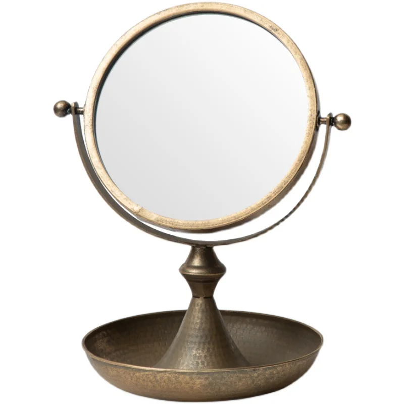 Ручная работа, зеркало для макияжа с круглым ювелирным блюдом, промышленная Ретро железная настольная подставка