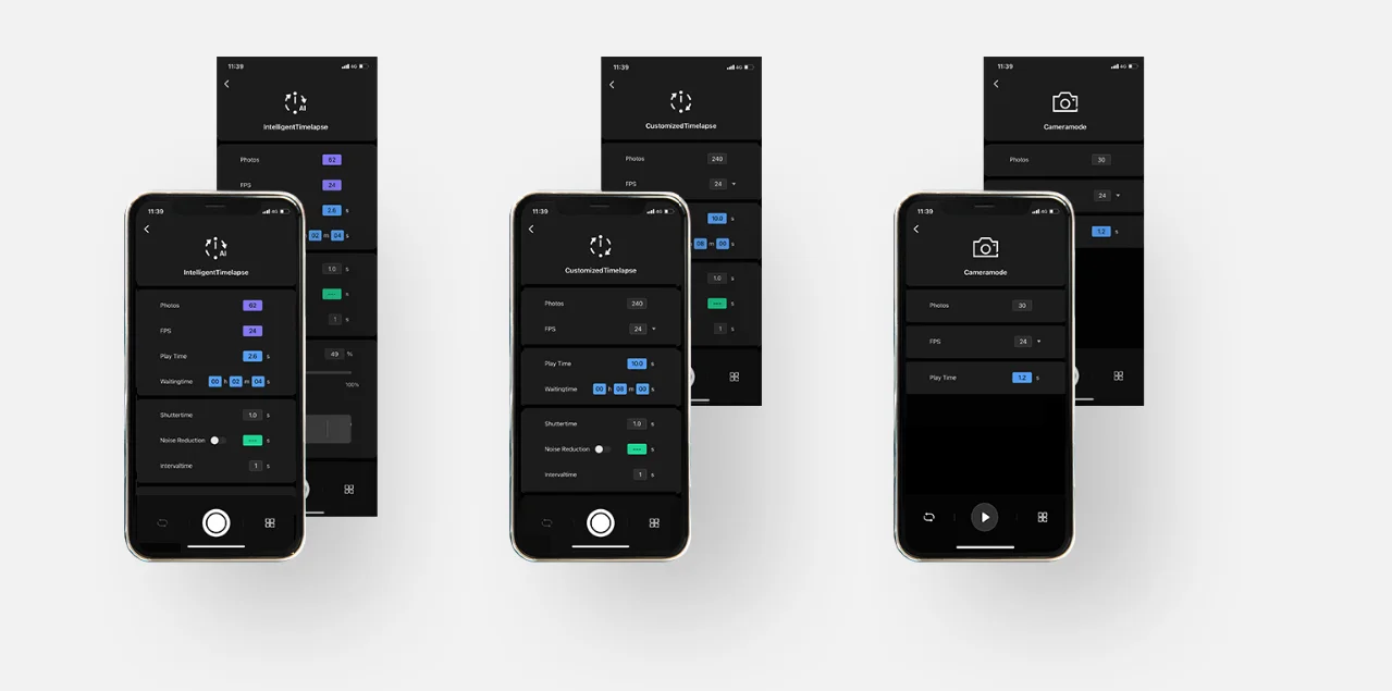 Доступны функции «интеллектуального таймелипса», «пользовательского таймелипса» и «режима камеры».