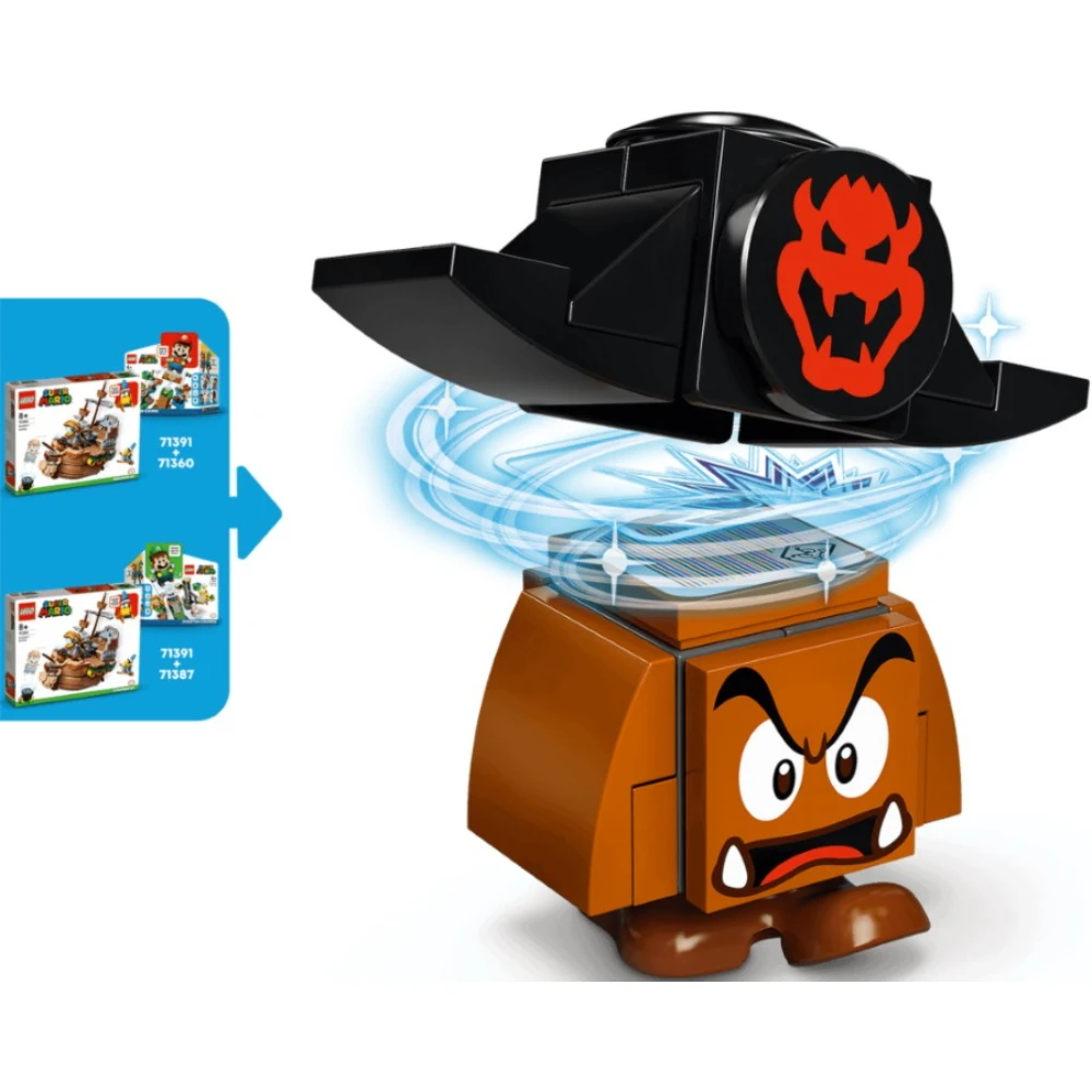 Конструктор Lego Super Mario Летучий корабль Боузера 71391 - это новинка 2021 года. С этим дополнительным набором дети могут собрать знаменитый летучий корабль Боузера - его можно выставить напоказ и расширить свою вселенную Super Mario. Корабль можно расположить «в режиме полета» или разложить «в режиме уровня», а игрокам нужно будет преодолеть такие трудности, как механическая рука Боузера и блок POW, чтобы выкурить Роки-ключа из укрытия. (Для игры требуется стартовый набор 71360 или 71387.) В набор входят фигурки камека, Роки-ключа и гумбы, а также пушечная стартовая труба - с ее помощью можно начать уровень на 90 секунд. Размеры воздушного корабля: более 30 см. в высоту, 35 см. в ширину и 19 см. в ширину в его режиме для отображения. Его можно раскрыть, а также самым разным образом сочетать с другими наборами LEGO Super Mario. В бесплатном приложении LEGO Super Mario вы найдете инструкции по сборке, вдохновение, безопасную площадку, где дети могут делиться идеями, и многое другое.