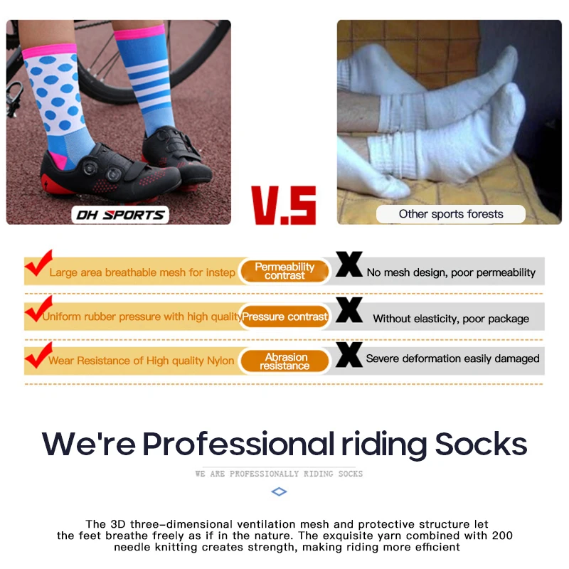Elastic cuff keep sock in place with proper tightness, breathable instep, wear resistant heel and looped toe reduce friction.