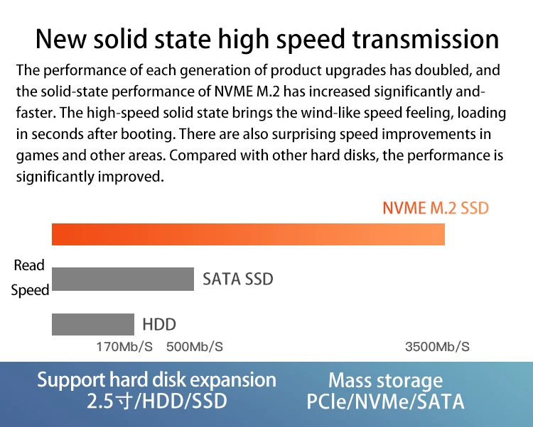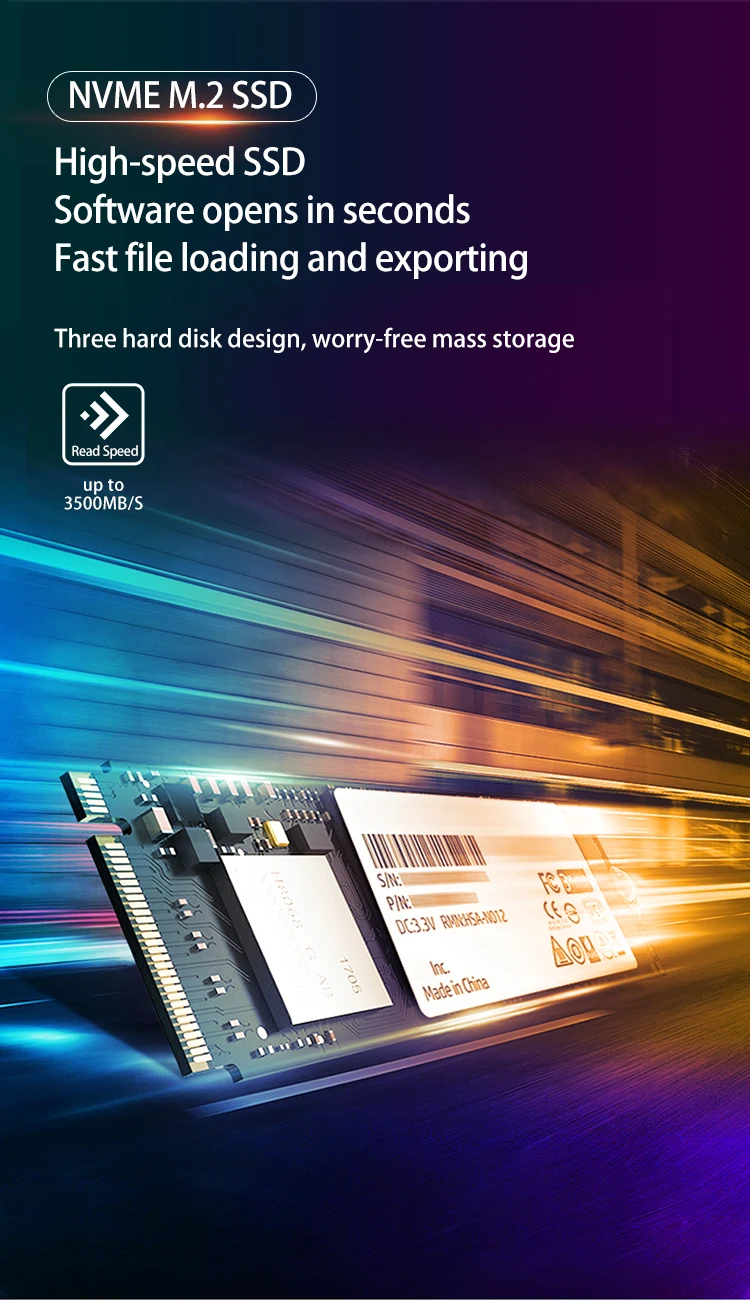 -Поддержка 2 * M.2 2280 NVME/PCIE3.0x4/SATA SSD + 1*2,5 ''SATA HDD/SSD.