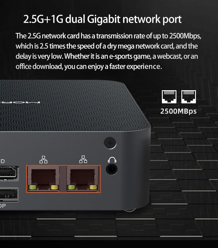 -Поддержка 2,5G & 1GДвойной разъем RJ45+M.2 2230 2,4G/5G двухдиапазонный AC(AX) WiFi/Bluetooth.