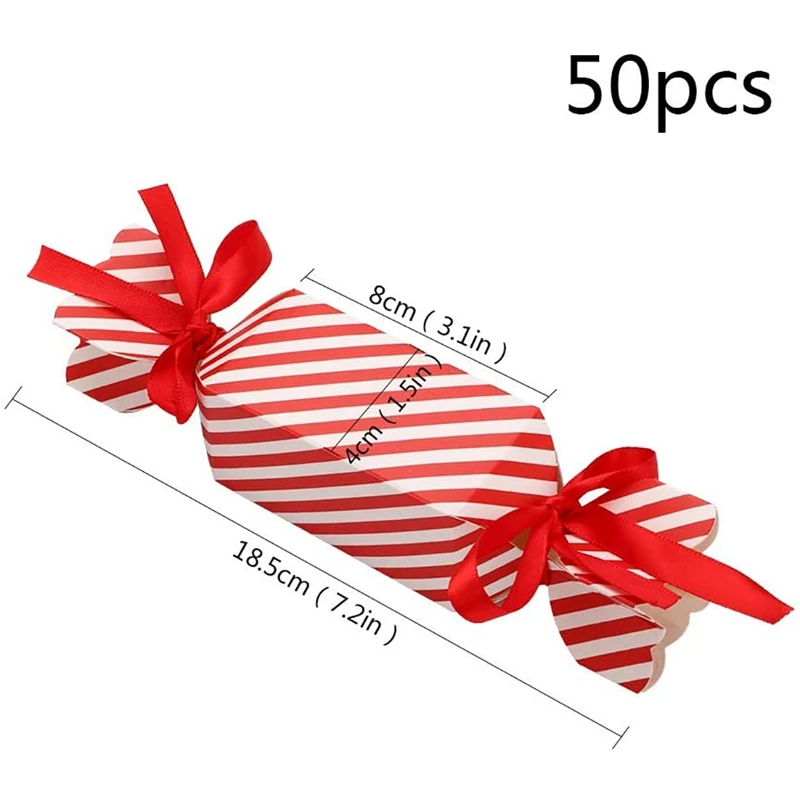 [Candy Shape Design]50 Pcs candy boxes with classic candy shape, red and white stripes, which is cute and elegant, increases warm and sweet and happiness Christmas atmosphere to your home.