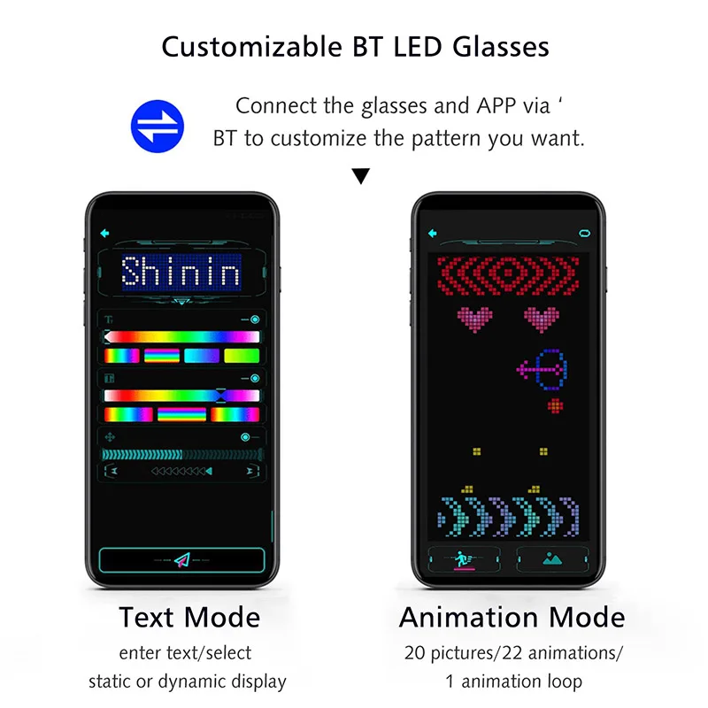 Music rhythm: You can choose different rhythm effects. In the rhythm mode, you can recognize other external sounds to enhance the lighting effect of the glasses.