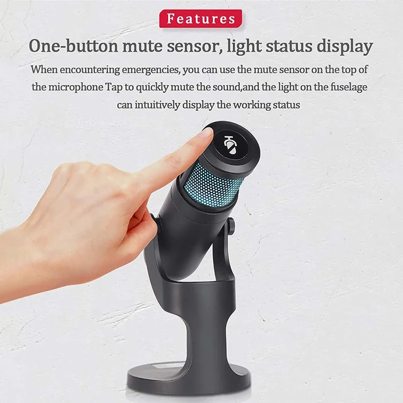 Удобное управление кнопками: Этот микрофон для записи поставляется с практичным, легким нажатием кнопок для основной работы s, одним кнопочным бесшумным датчиком, индикатором состояния в аварийной ситуации, светильник вы можете нажать на бесшумный датчик в верхней части микрофона, чтобы быстро отключить звук, И светильник на корпусе может интуитивно отображать рабочее состояние.