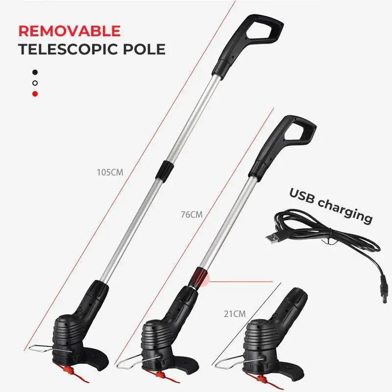 Портативный Телескопический полюс:Он может удовлетворить различные требования к высоте (полюс выдвигается на 1-30 см), не нужно наклоняться, чтобы обрезать газон, и вы можете легко зафиксировать высокую изгородь!