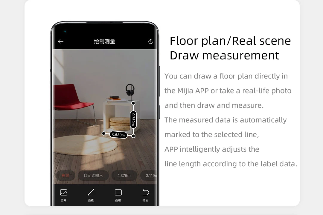Умный лазерный дальномер Xiaomi Mijia MJJGCJYD001QW LCD 3 мм Высокая точность реальные сцены интеллектуальное измерение с приложением Mijia