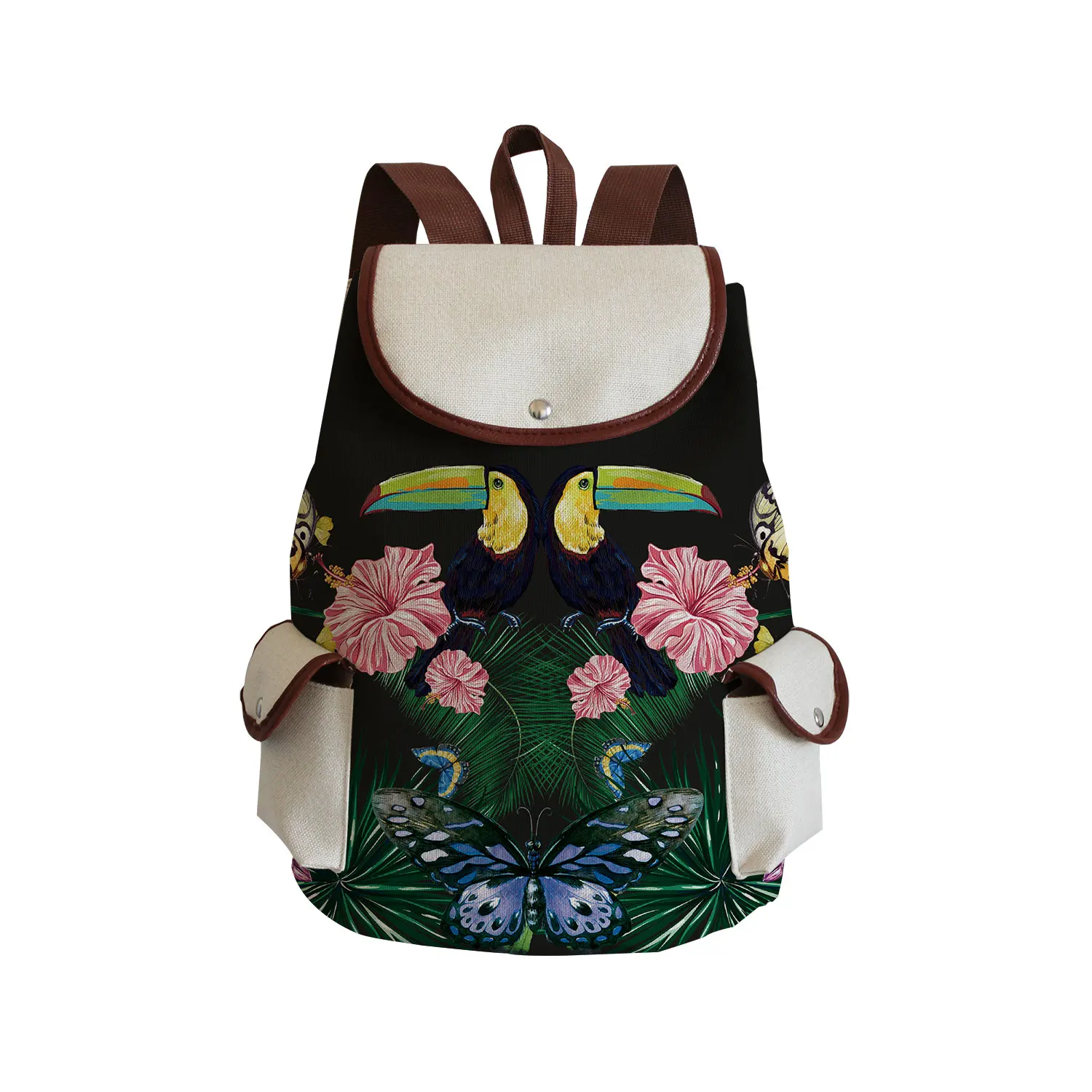 Miyahouse женский модный льняной рюкзак с принтом стрекозы, женский рюкзак на шнурке, дорожный рюкзак для девочек, черный школьный рюкзак на плечо