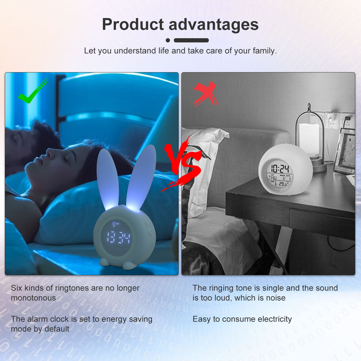 【 6 забавных мелодий звонка 】 R1, R2 настройки будильника, 6 мелодий звонка больше не являются однообразными. Вы можете отрегулировать громкость мелодии и выключить тон, чтобы вы знали, как жить и как заботиться о своей семье.