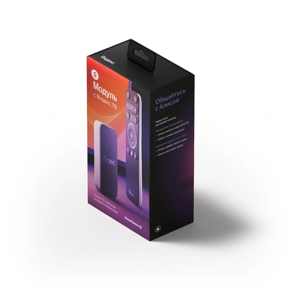 Компактное устройство, которое сделает ваш телевизор умнее и добавит туда Smart TV c Алисой. Подключайте и управляйте голосом. Для работы Модуля требуется порт HDMI в телевизоре и беспроводное подключение к интернету по Wi-Fi. Для большей стабильности настройте роутер для работы в диапазоне 5 ГГц. Совместимость вашего телевизора с Модулем не гарантируется. Смогут ли они работать вместе — уточняйте у производителя телевизора.