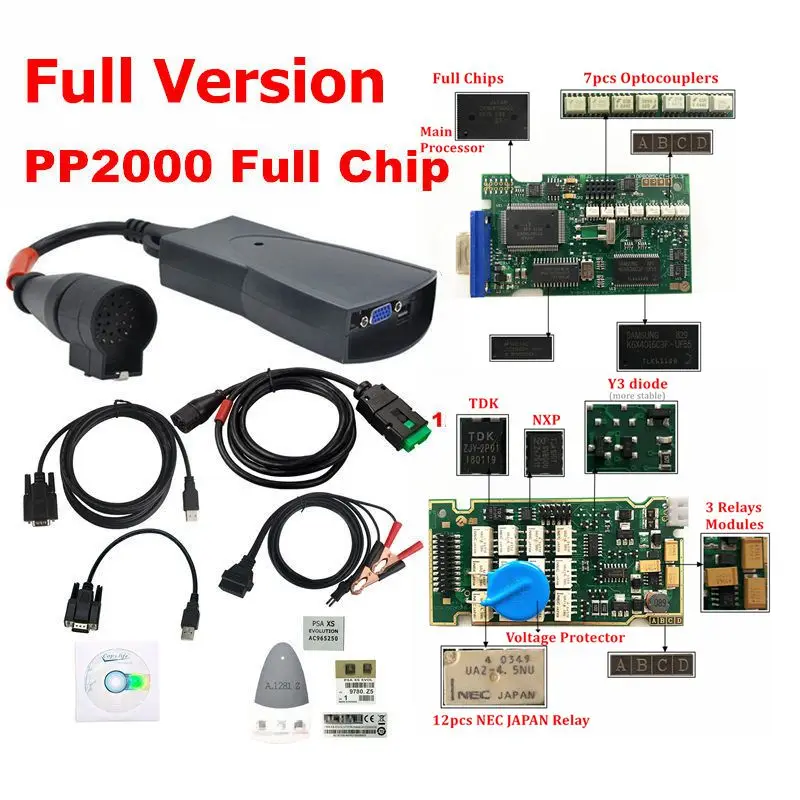 2.PP2000,Lexia-3 выполняется через OBD-II разъем (который расположен рядом с рулевым колесом) или через конкретного производителя коннектора (только старые автомобили, pre-2001).