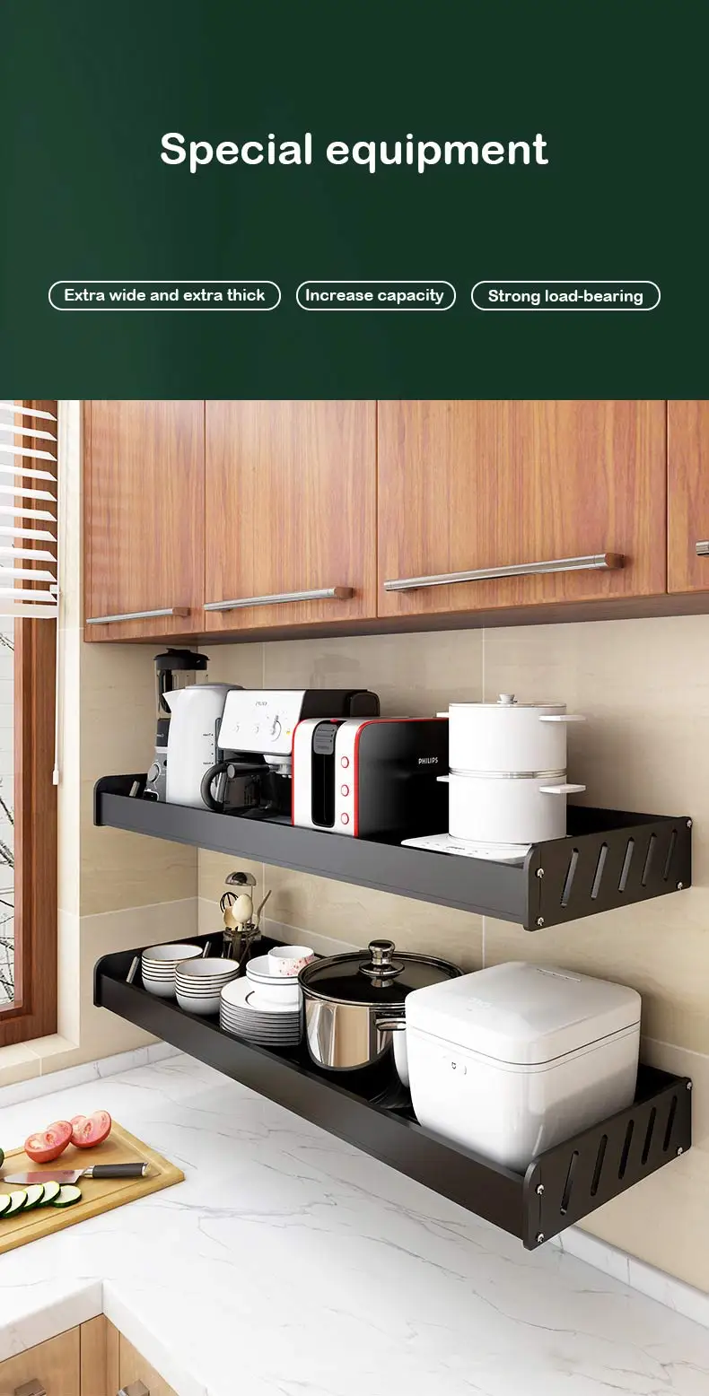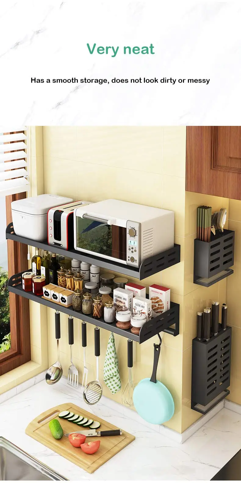 2. Сильная несущая способность, можно разместить несколько кухонных принадлежностей, и его нелегко повредить. Вы можете выбрать подходящий рост для установки и использования.