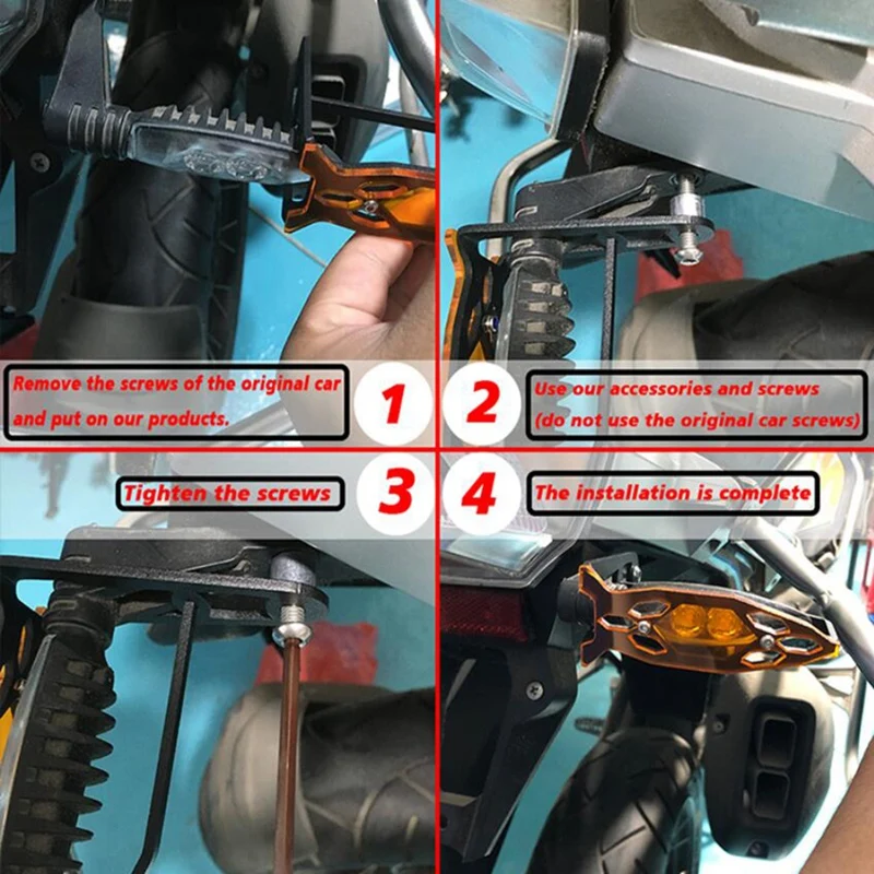 Protect the fragile lenses of your LED turn signal lights from rock damage with these strong, anodized stainless steel guards.