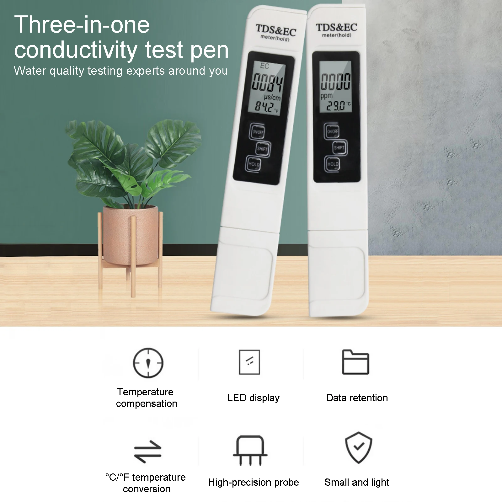3 в 1 многофункциональная ручка для проверки качества воды: измеряет TDS/EC/TEMP (надежные и быстрые показания).