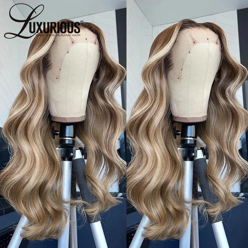 Выделите медовый блонд свободная волна фронта шнурка человеческих волос парики для женщин Омбре объемная волна прозрачный парик шнурка 613 фронтальный парик шнурка