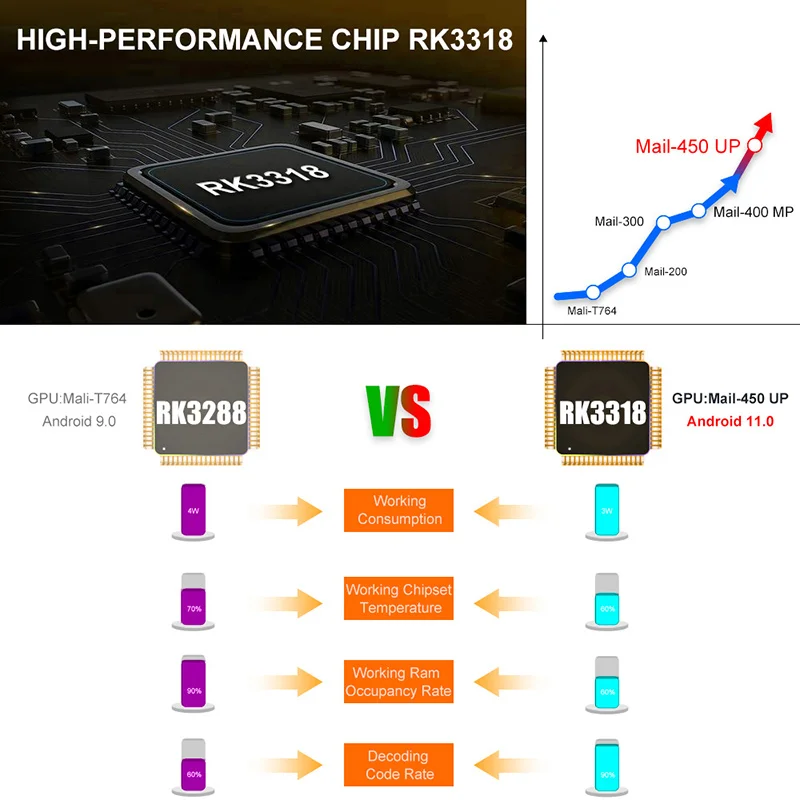 ◆Chipset RK3318 четырехъядерный 64 бит Cortex-A53