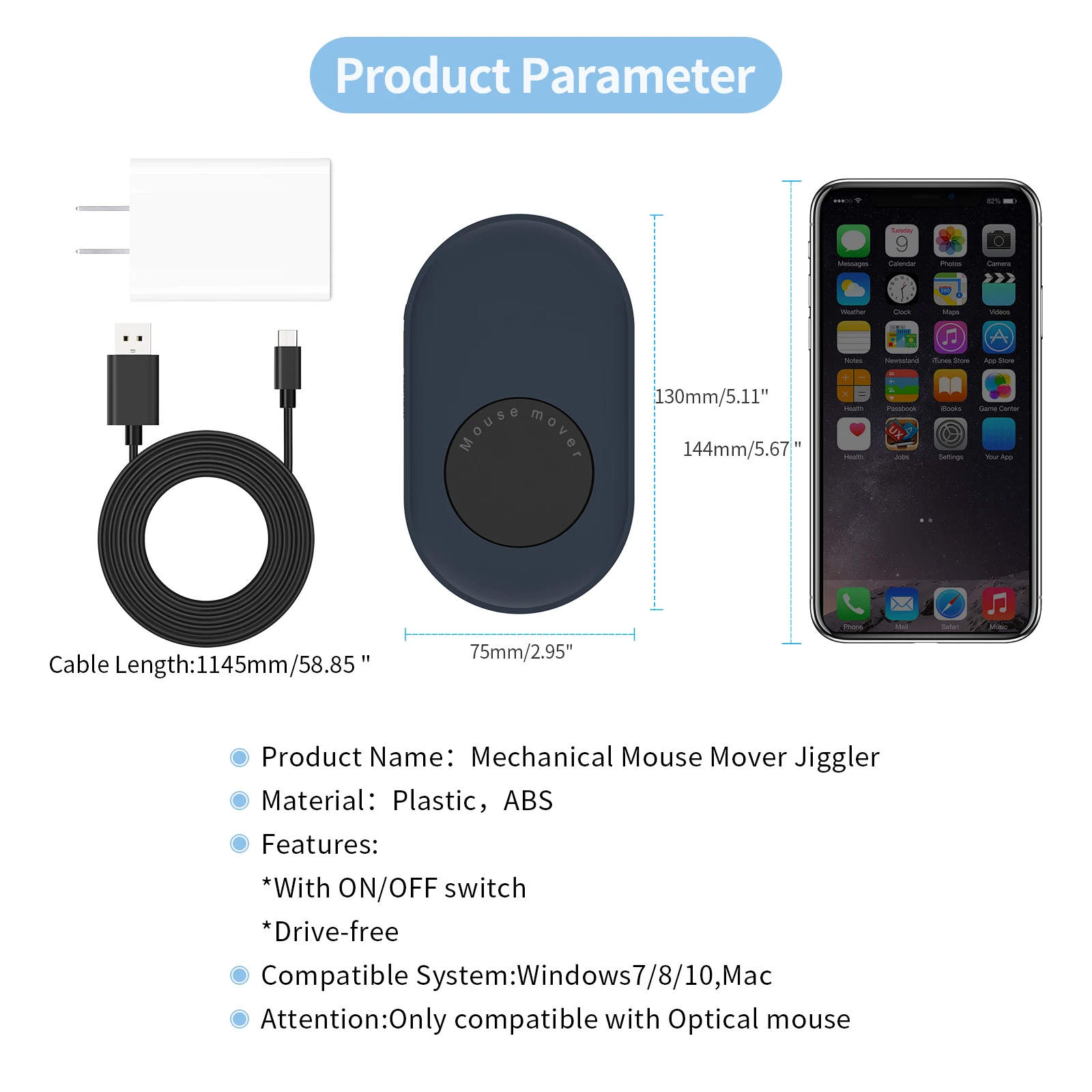 【 Driver-free】 нет необходимости устанавливать любой драйвер на вашем компьютере, так как компьютер является просто источником питания для этой мыши jiggler.