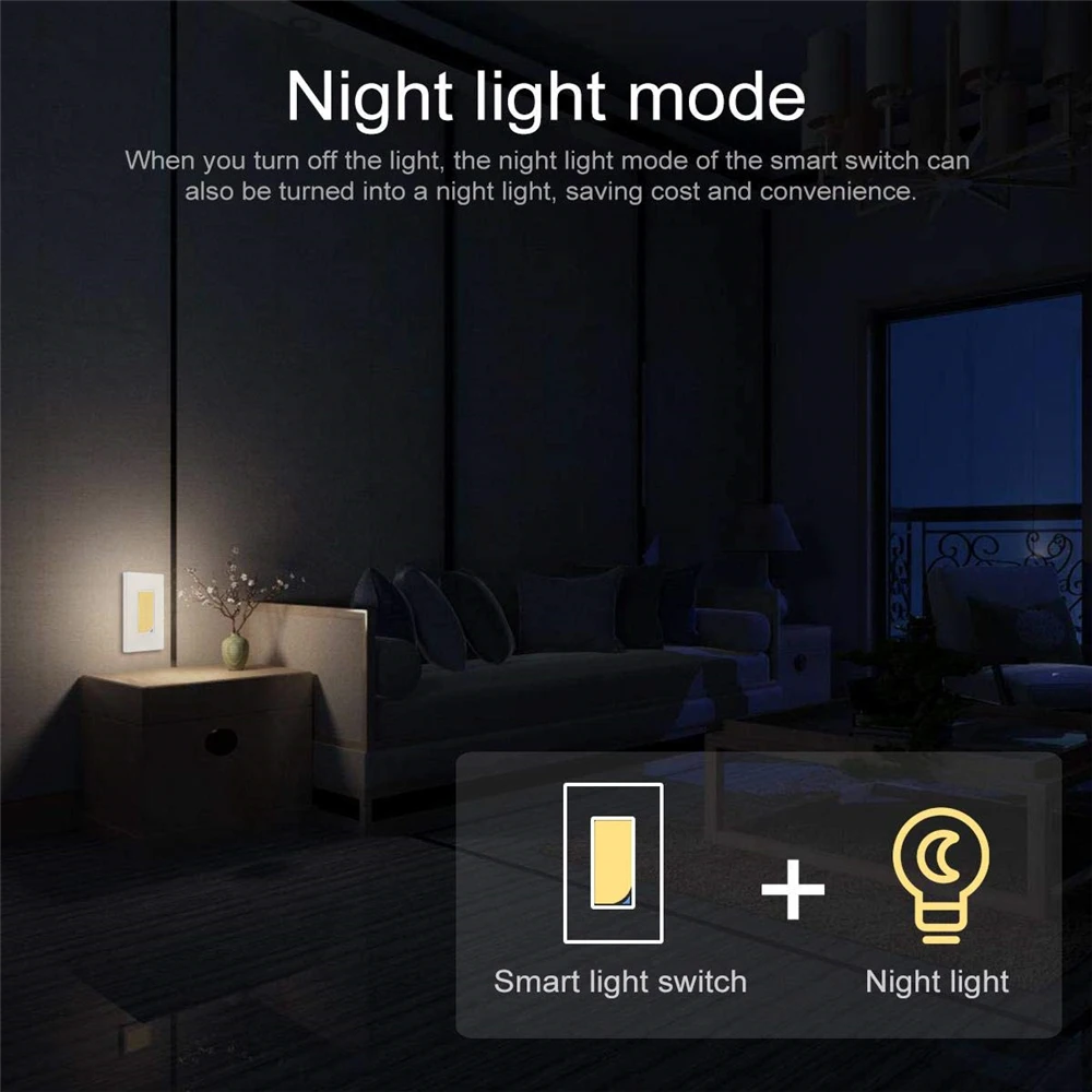 [Высокая стоимость]: Нет необходимости устанавливать ночные светильники в спальне. Встроенный Ночной светильник, продукт поставляется с 1200 цветами, и яркость регулируется от 0% до 100%. Параметры ночной Светильник сцены: ток 10A; Мощность 2 Вт; 3 режима управления-Голосовое управление, управление смартфоном (убедитесь, что переключатель подключен к приложению), дважды нажмите кнопку переключения