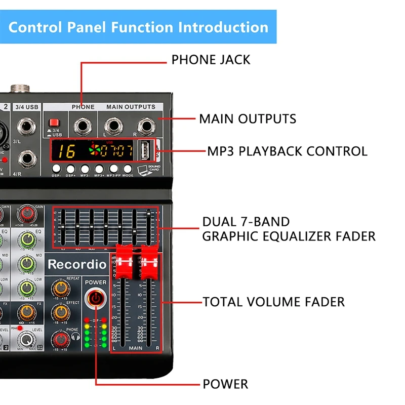 GAX-MM4 мини 4-канальный USB аудио Миксер с Blueteeth Функция 48V фантазия Мощность мульти-Функция смеситель штепсельная вилка европейского стандарта