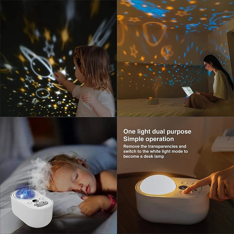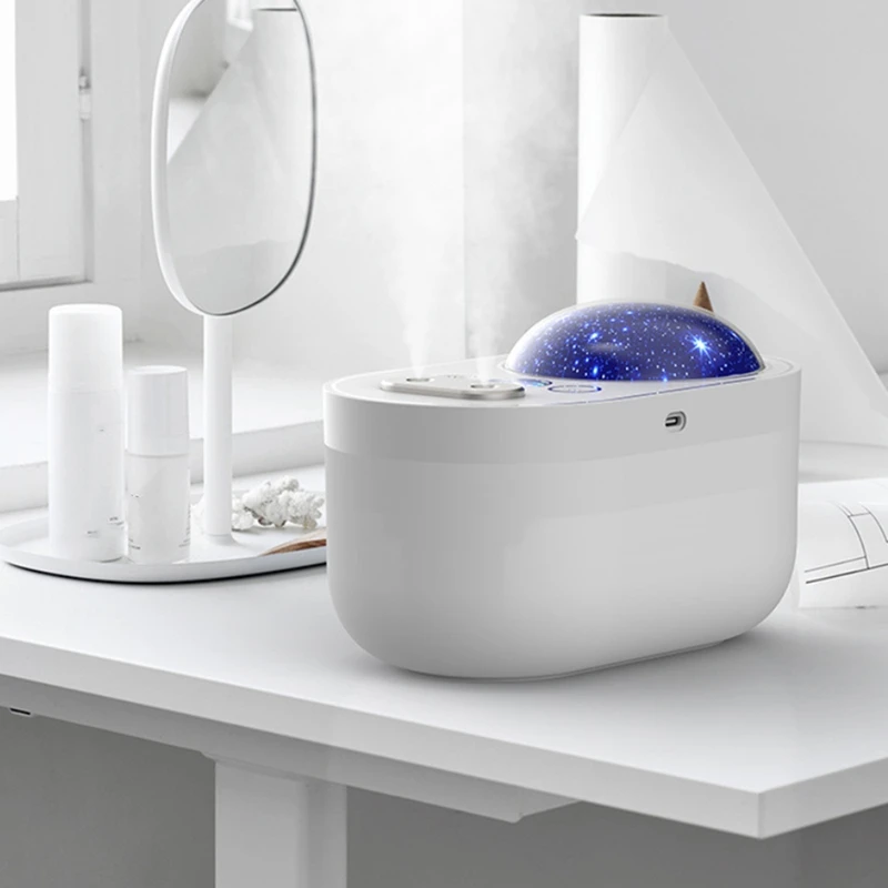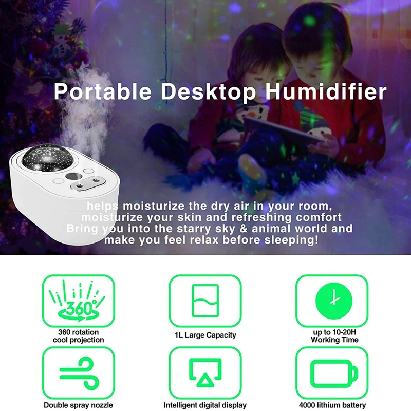 Увлажнитель воздуха с уникальным дизайном, не только обычный увлажнитель, но и ночной Светильник и звездный проектор для детской комнаты. Это двойной спрей-увлажнитель 3 в 1.