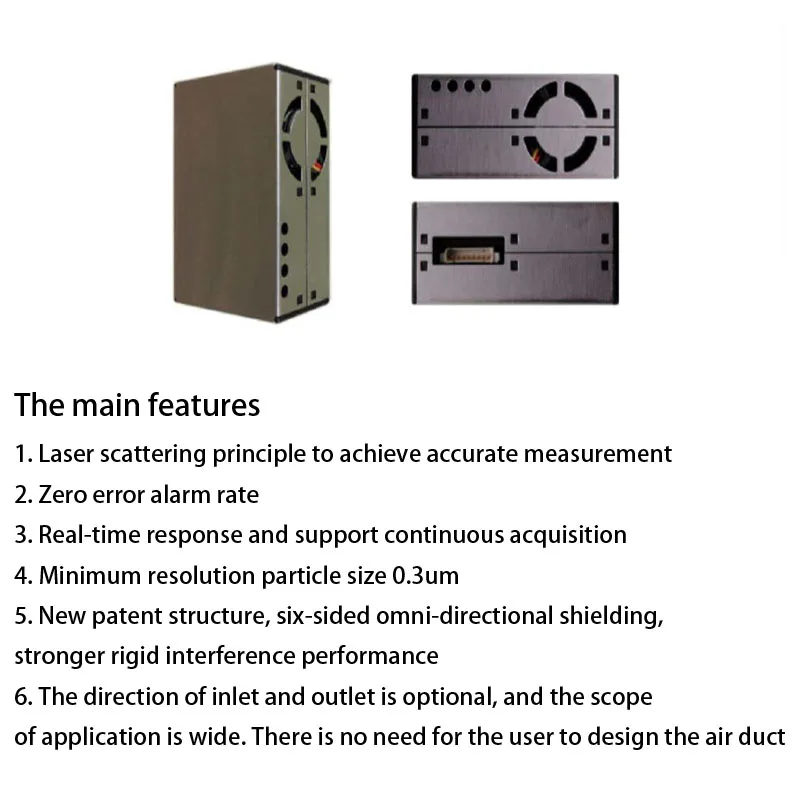 Меры предосторожности1. Металлический чехол должен быть проводящим к внутреннему источнику питания и не должен быть коротким подключением к другой внешней панельной цепи или корпусу шасси.2. Самолет, в котором находится воздухозаборник и выход, находится близко к отверстию для воздуха, соединенному с стеной машины пользователя и снаружи, что является лучшим методом установки. Если он не может быть реализован, не будет экранирования вокруг выхода воздуха в пределах 2 см. Должна быть структура между входом воздуха и выходом воздуха, чтобы изолировать поток воздуха, чтобы избежать потока воздуха от выхода воздуха непосредственно к входу воздуха в машине пользователя.3. Входное отверстие воздуха на внутренней стенке устройства пользователя не должно быть меньше, чем размер впускного отверстия.4. При нанесении на продукты очистителя старайтесь избегать размещения датчика непосредственно в воздуховоде очистителя. Если этого не избежать, необходимо установить отдельное пространство конструкции, чтобы изолировать датчик от воздуховода очистителя.5. При использовании очистителя или фиксированного оборудования обнаружения Положение датчика должно быть более 20 см над землей. В противном случае, он может быть загрязнен крупными частицами пыли или даже локонами возле земли, что приводит к намотке и блокировке вентилятора.6. Когда датчик применяется к наружному фиксированному оборудованию, защита от погоды, таких как песчаный шторм, дождь и снег, и willow catkins, должна быть завершена оборудованием.7. Датчик является составной частью. Пользователи не должны разбирать его, в том числе металлический защитный чехол, в чехол необратимого повреждения.8. Нижняя часть датчика должна быть зафиксирована саморезом 2 мм, а длина входящего в корпус винта не должна превышать 5 мм.